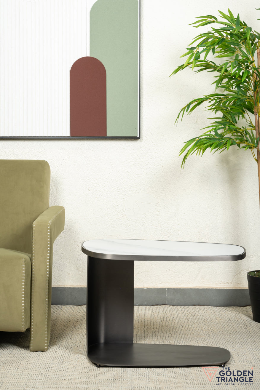 Tropez C Side Table - Gun Metal & White