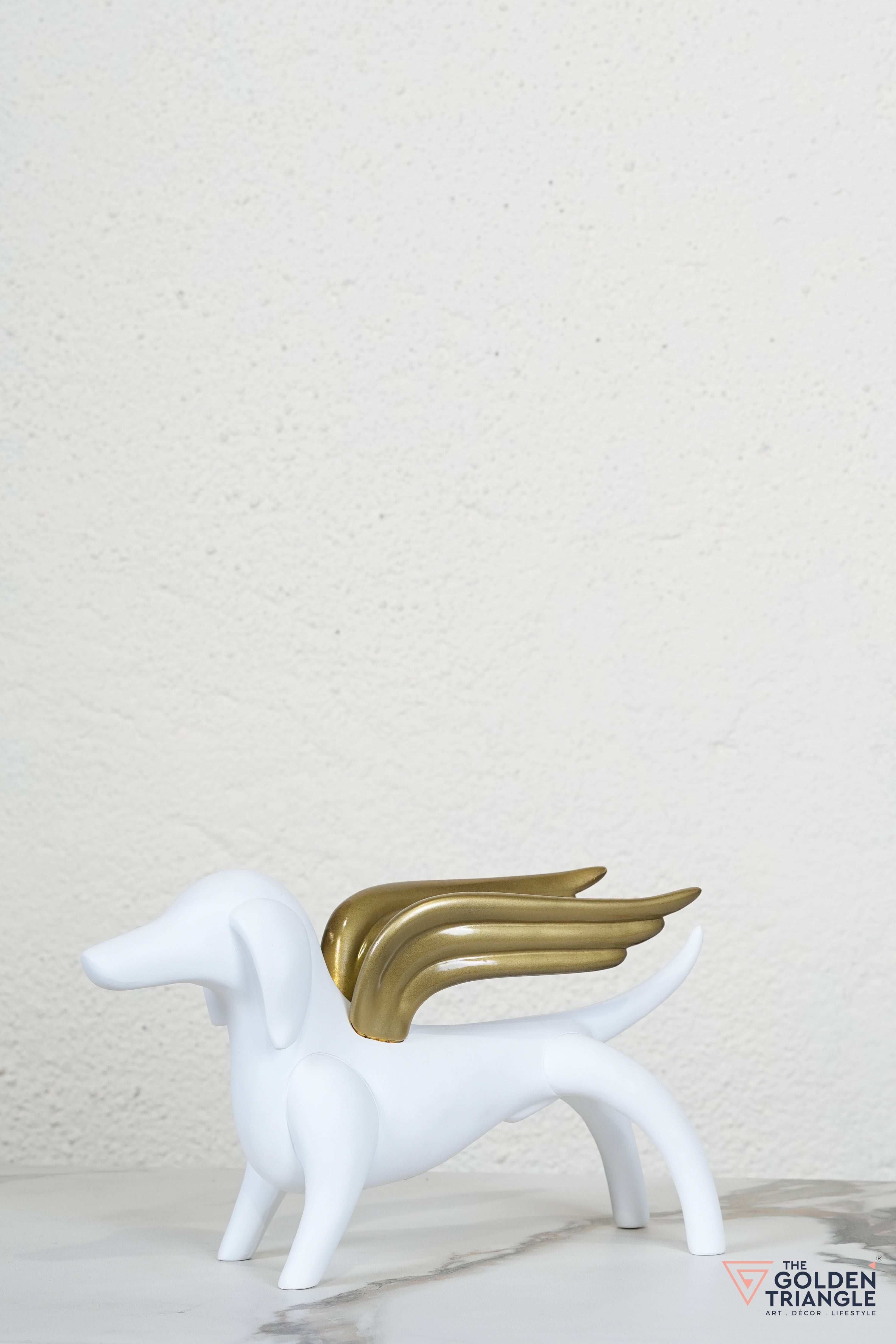 Hello, dog lovers! Looking for a zen companion for your table or book shelf ? Crafted with a contemporary finish, this dog figurine porting elegant and copper wings could be placed on your study table or brighten up any corner and attract loving glances every now and then.