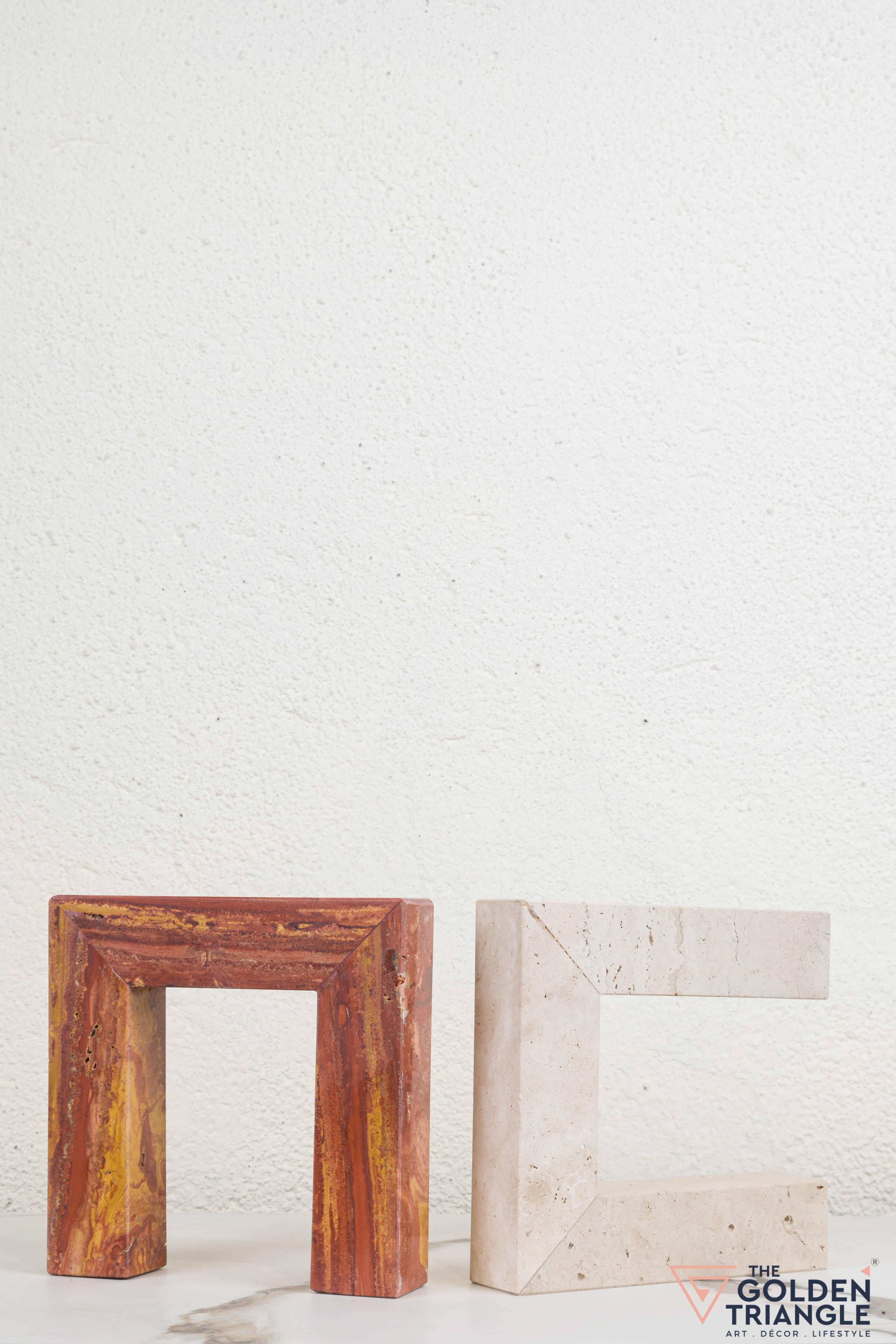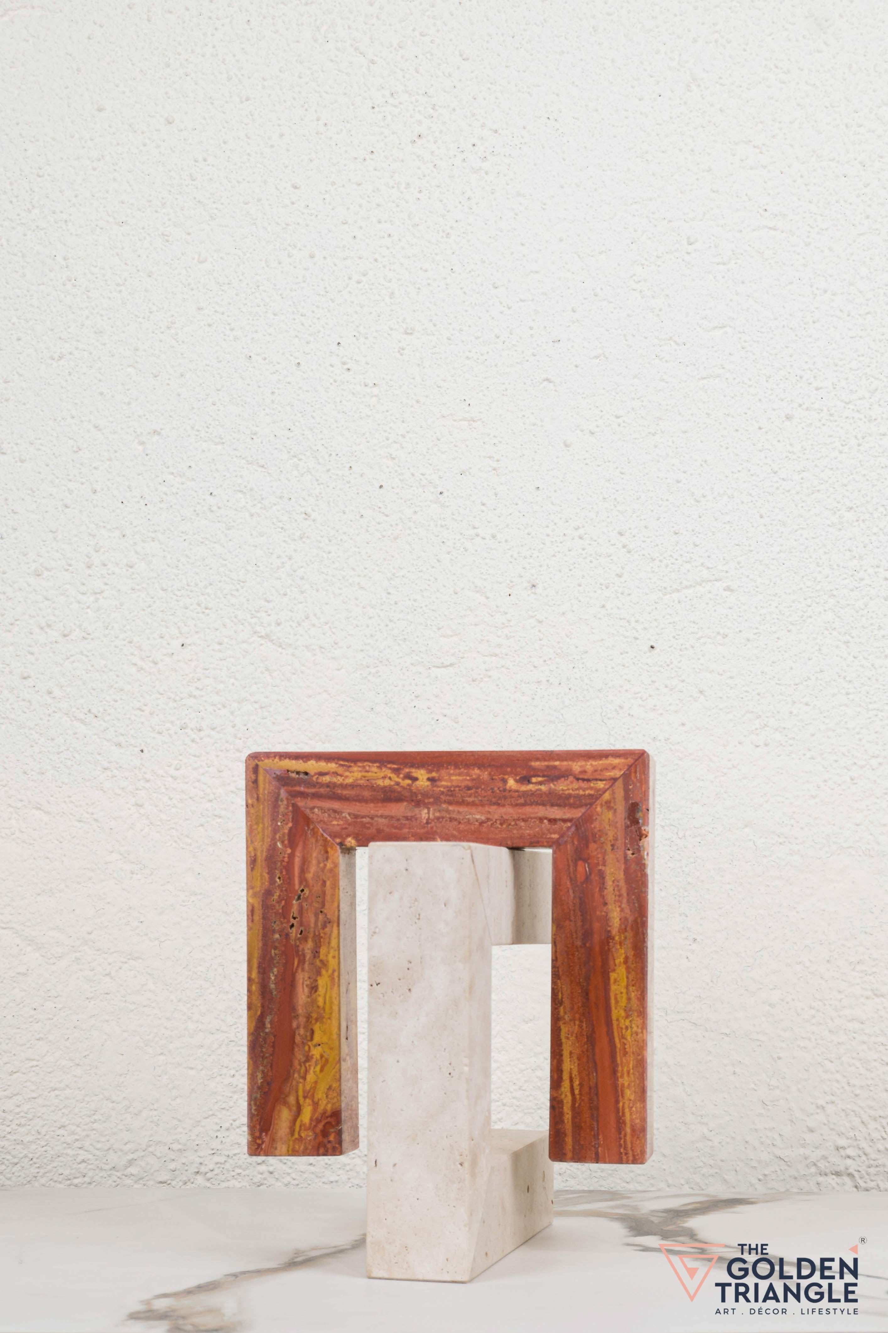 - Travertine Marble : Crafted from natural travertine marble in earthy red and beige tones, highlighting timeless elegance and natural texture.