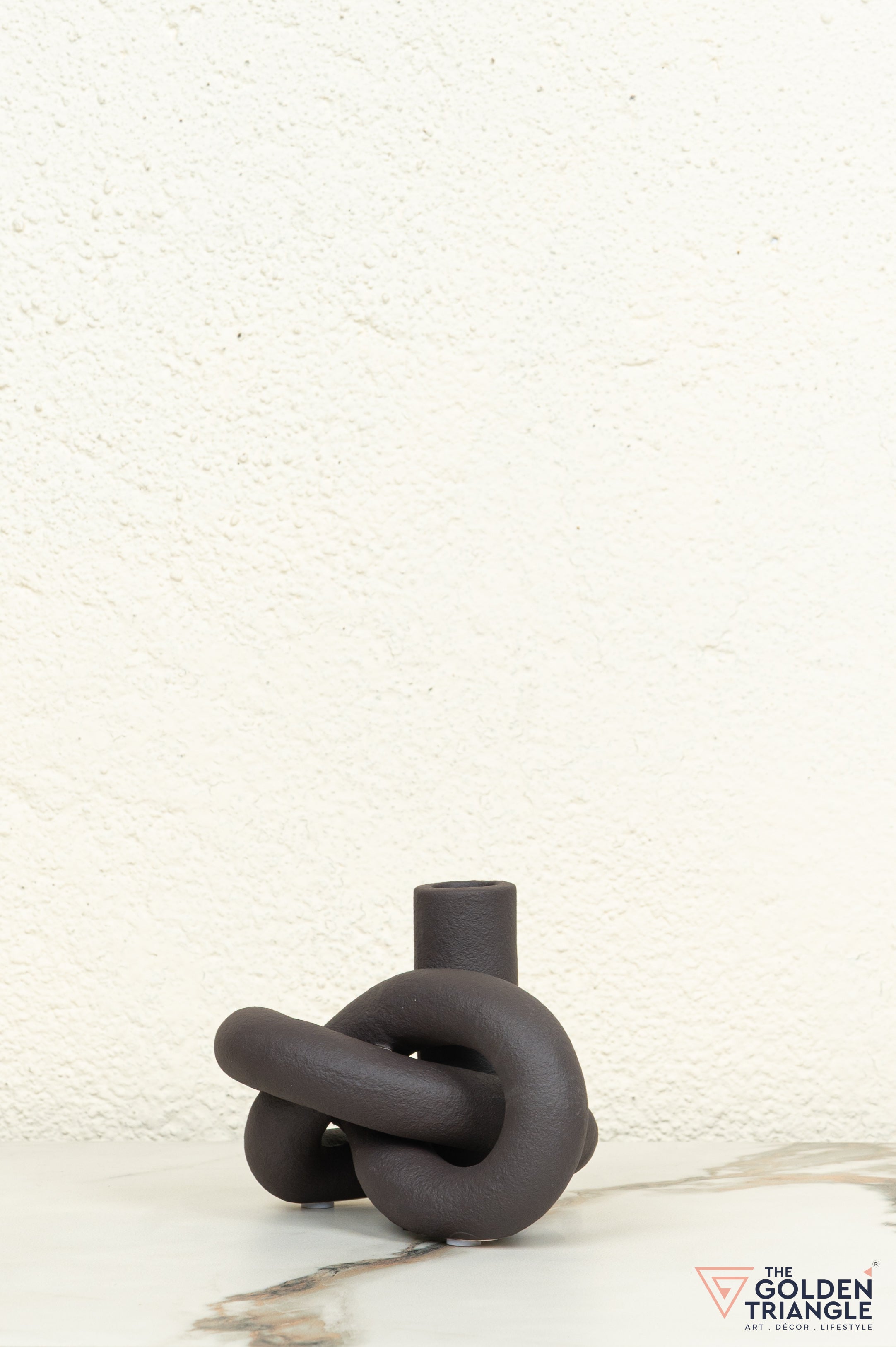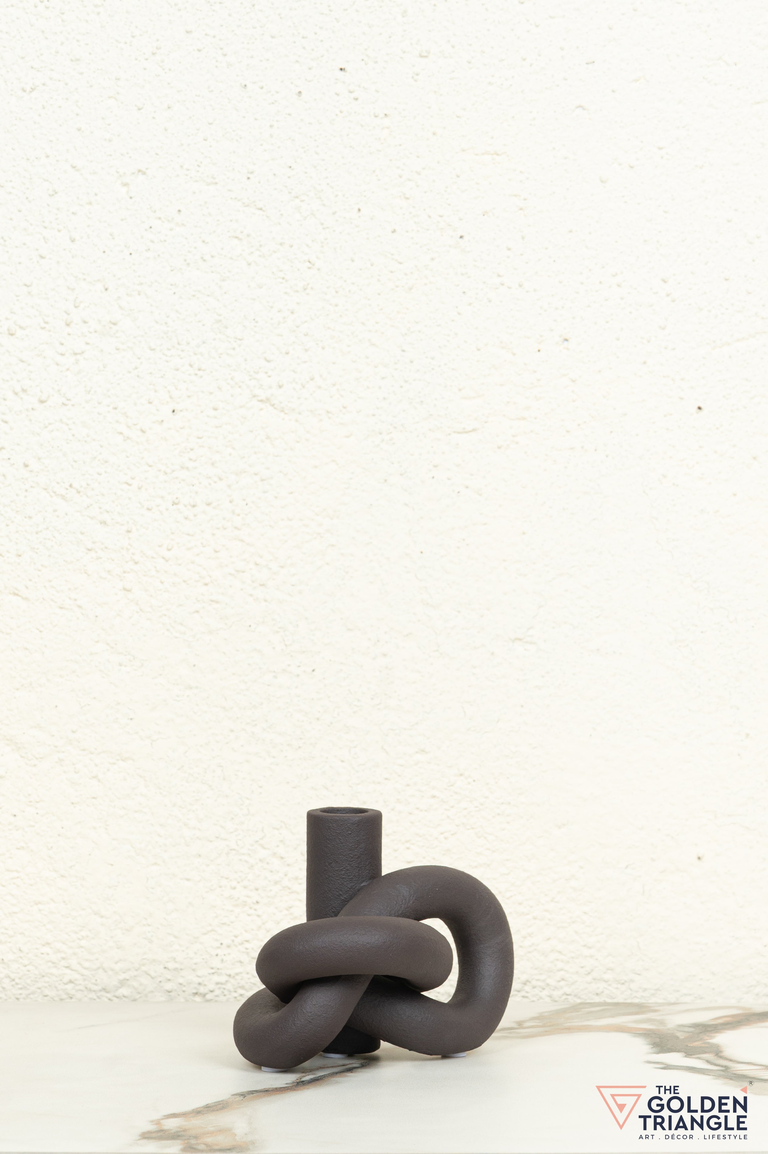 Gin Knot Tabletop Ceramic Candle Stand - Black