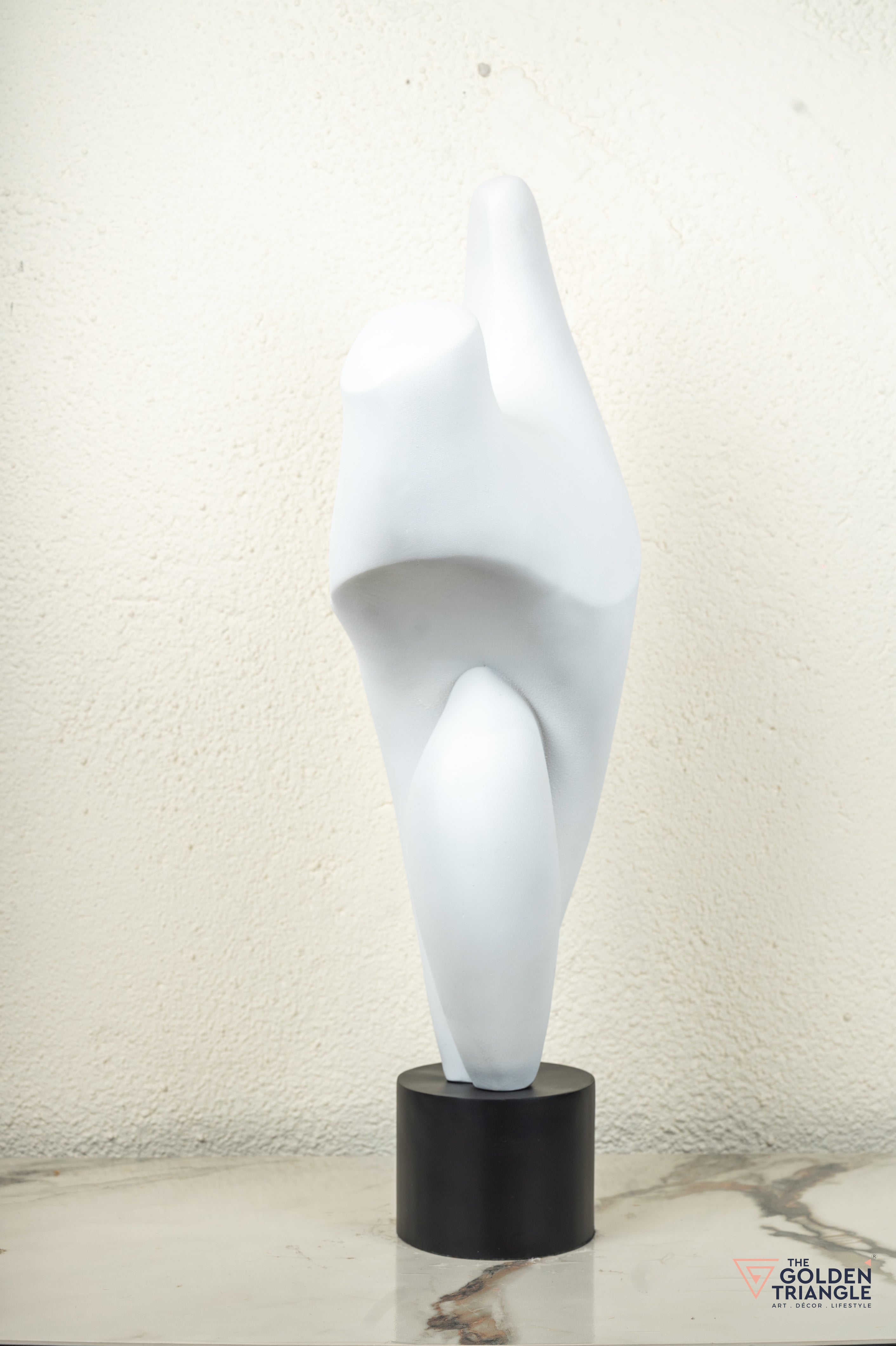 Add a touch of contemporary art to your home with this striking white resin sculpture. Its unique, flowing design and sleek black marble base create a captivating focal point. Perfect for showcasing on a coffee table or mantelpiece, this sculpture adds a touch of sophistication and conversation-starting appeal to any space. A must-have for home decor enthusiasts seeking a modern and artistic statement piece.