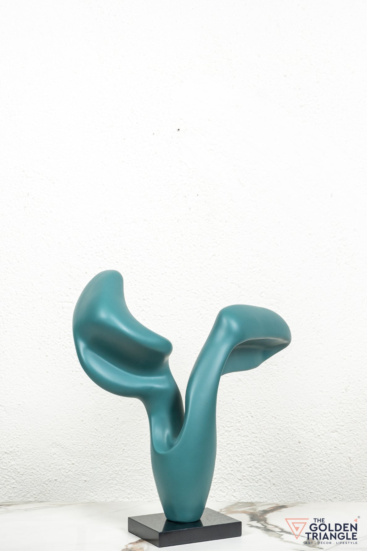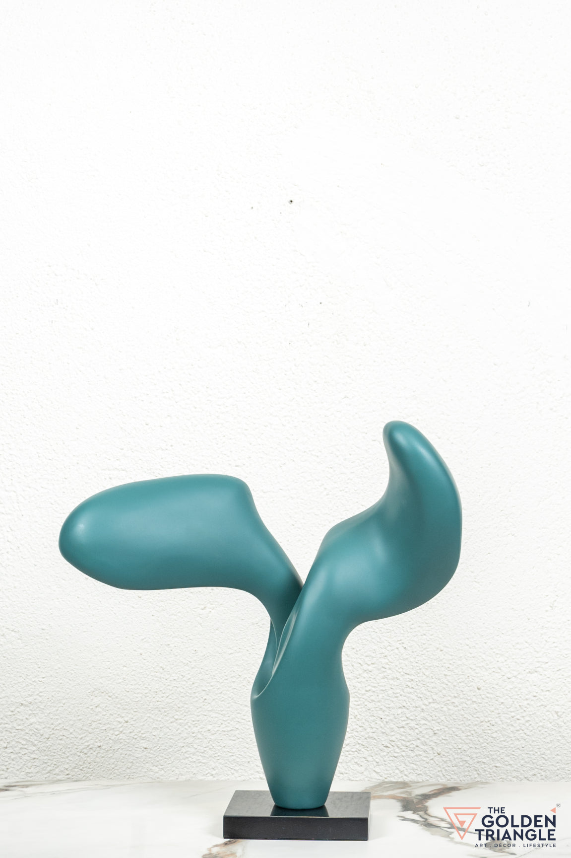 This unique, hand-crafted resin sculpture is a captivating addition to any modern home decor. Its abstract shape and soothing teal color create a focal point that draws the eye. The smooth, polished black marble base provides a striking contrast. This sculptural piece is a perfect blend of art and function, adding a touch of elegance and sophistication to your living space.
