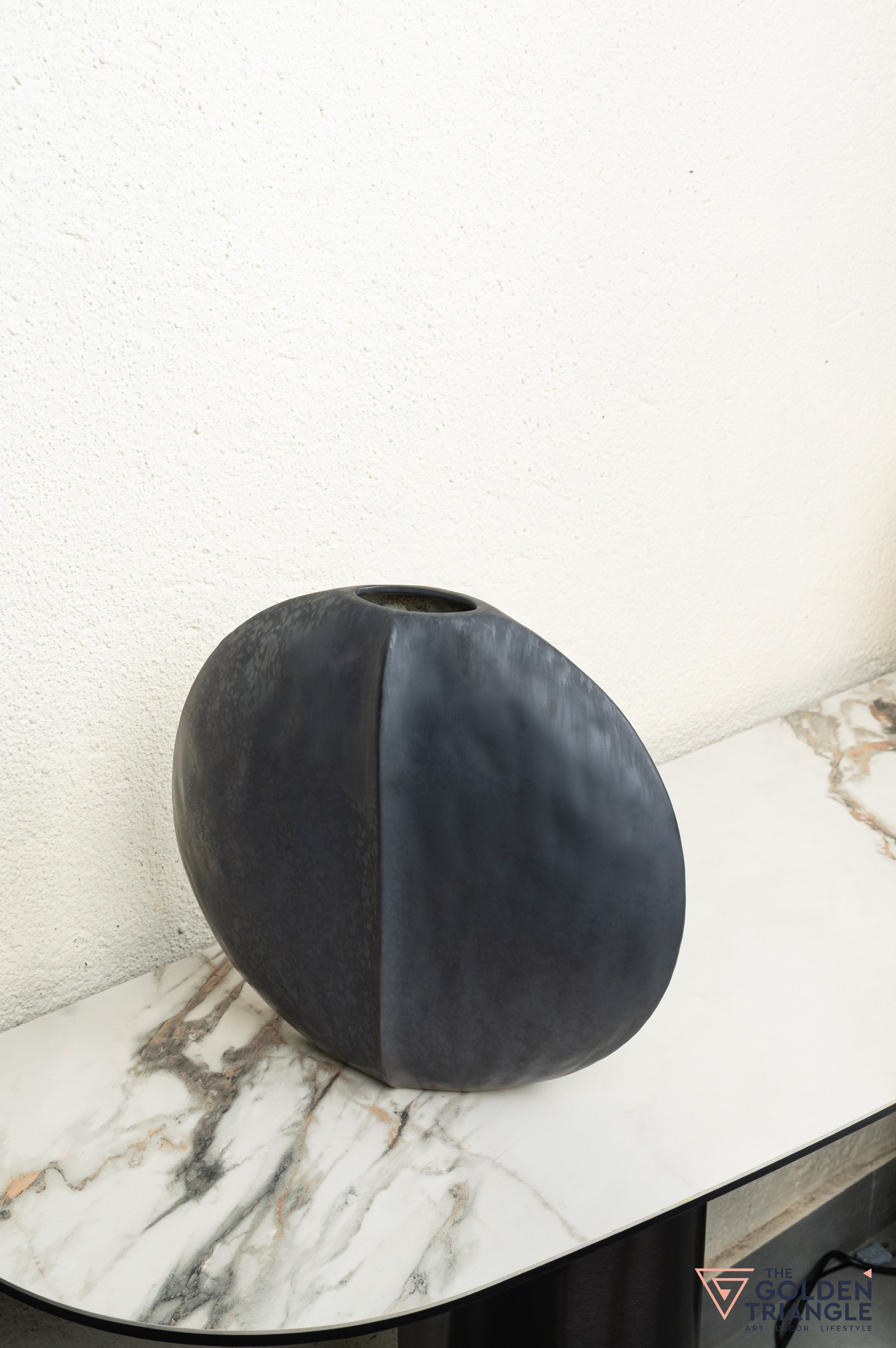Discreet Opening: Designed with a small mouth opening, perfect for a single dry stem or to be appreciated purely as a standalone sculpture.
