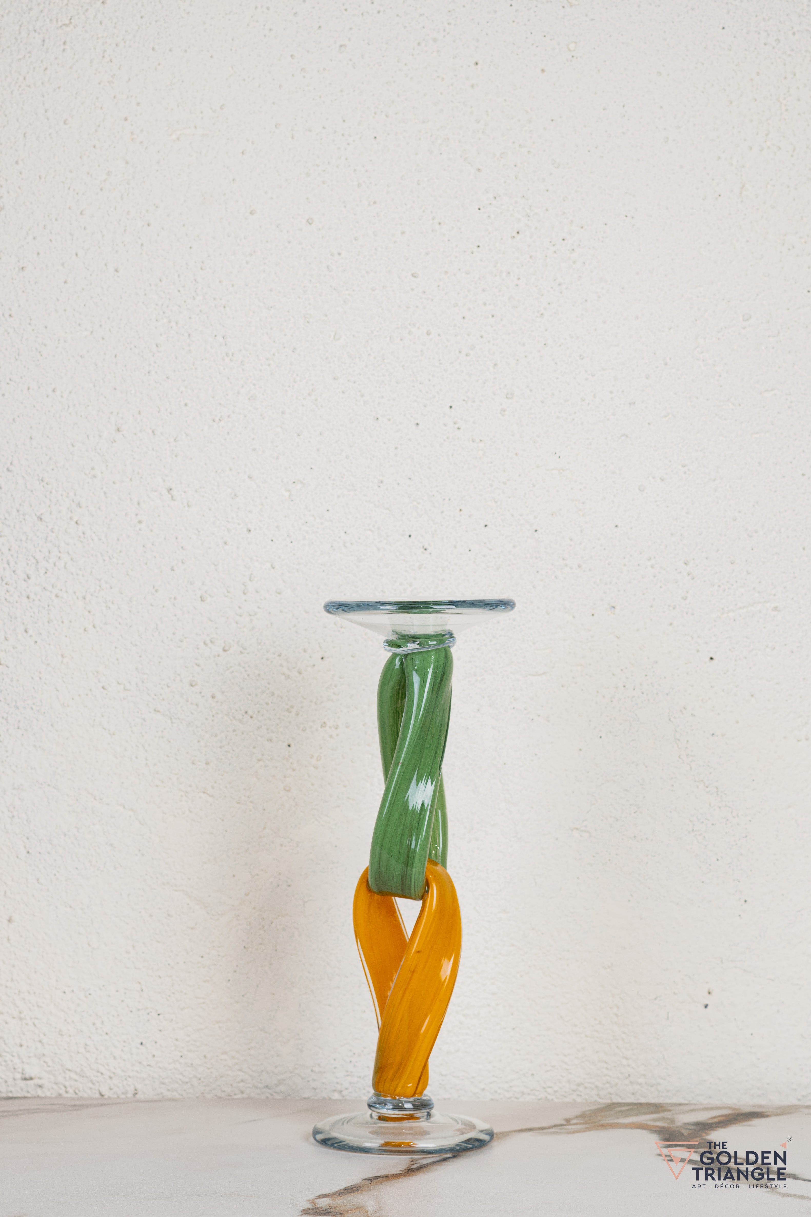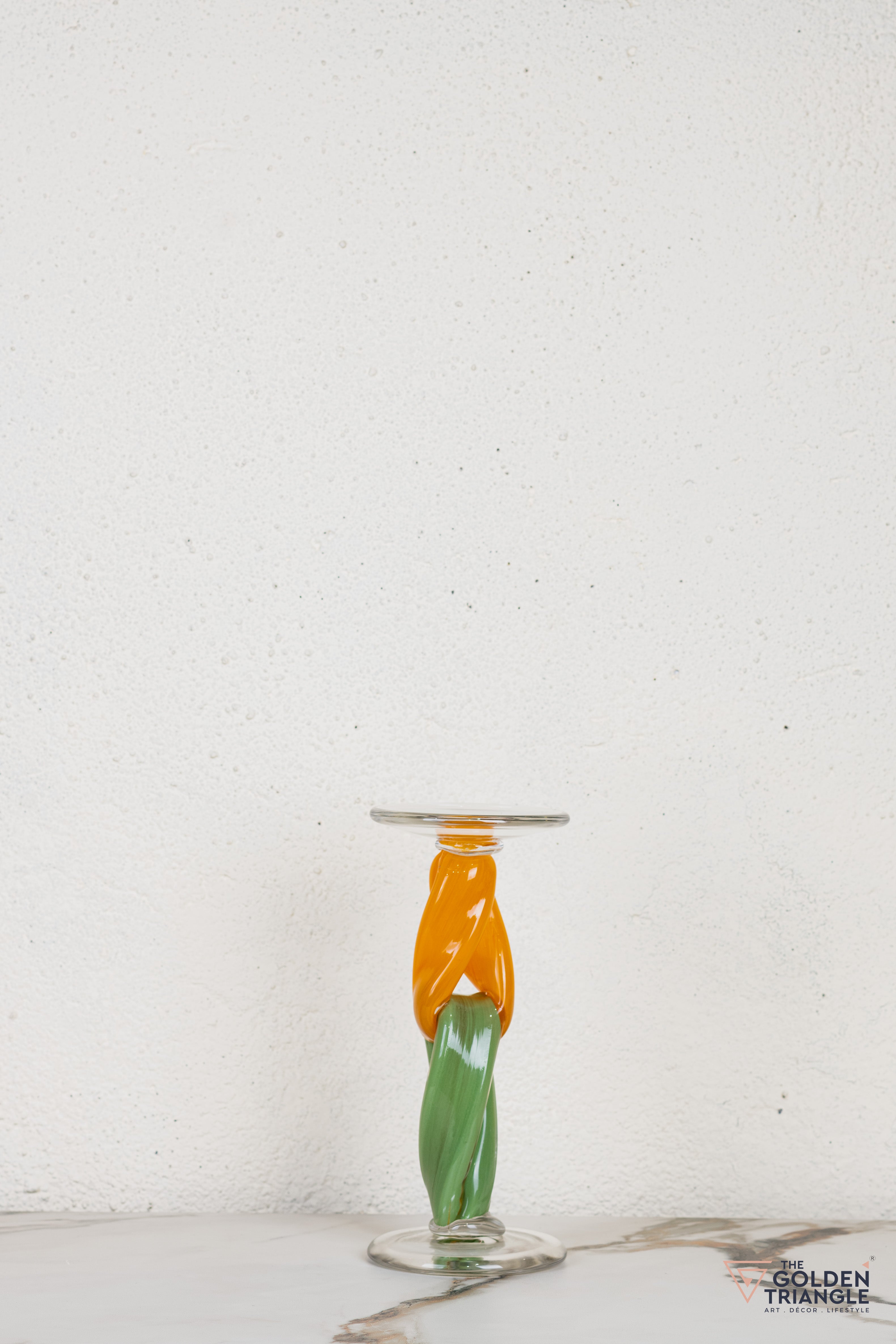 This captivating sculpture is a mesmerizing study in form and movement. Crafted from premium glass, the piece showcases a dynamic interplay of light and shadow, with a palette of clear and rich amber hues. The subtle shading and texturing add depth and dimension, while the contrasting colors create a striking visual impact.