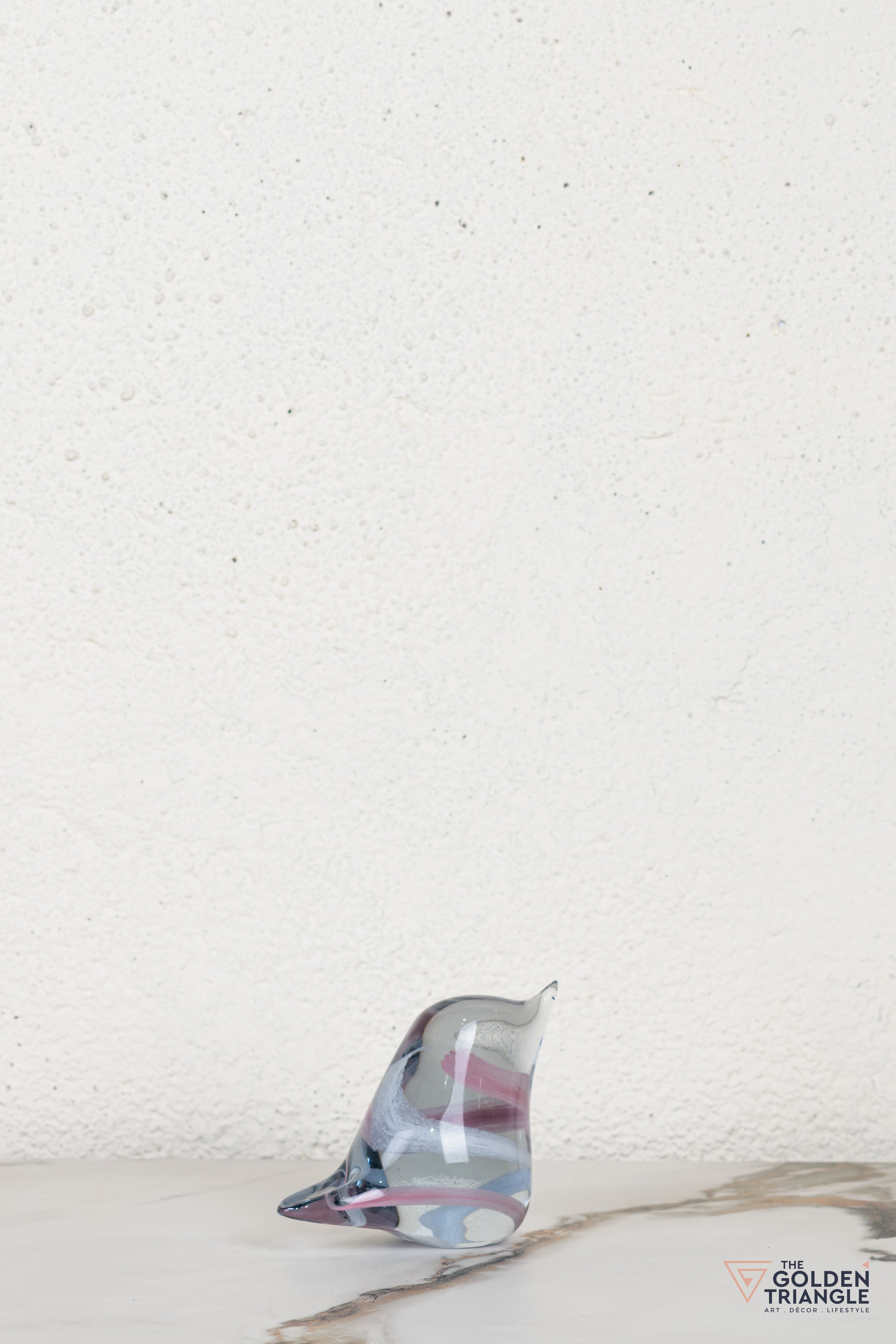 This exquisite glass sculpture captures the graceful form of a bird in flight. Crafted from premium glass, the piece showcases a mesmerizing interplay of colors, with a palette of deep blue, shimmering gold, and clear glass. the subtle shading, showcase the artistry and craftsmanship involved in its creation. This statement piece is perfect for adding a touch of nature and whimsy to any space. Whether placed on a mantelpiece, a side table, or as the centerpiece of a gallery wall, it will undoubtedly become a conversation starter and a cherished addition to your decor.