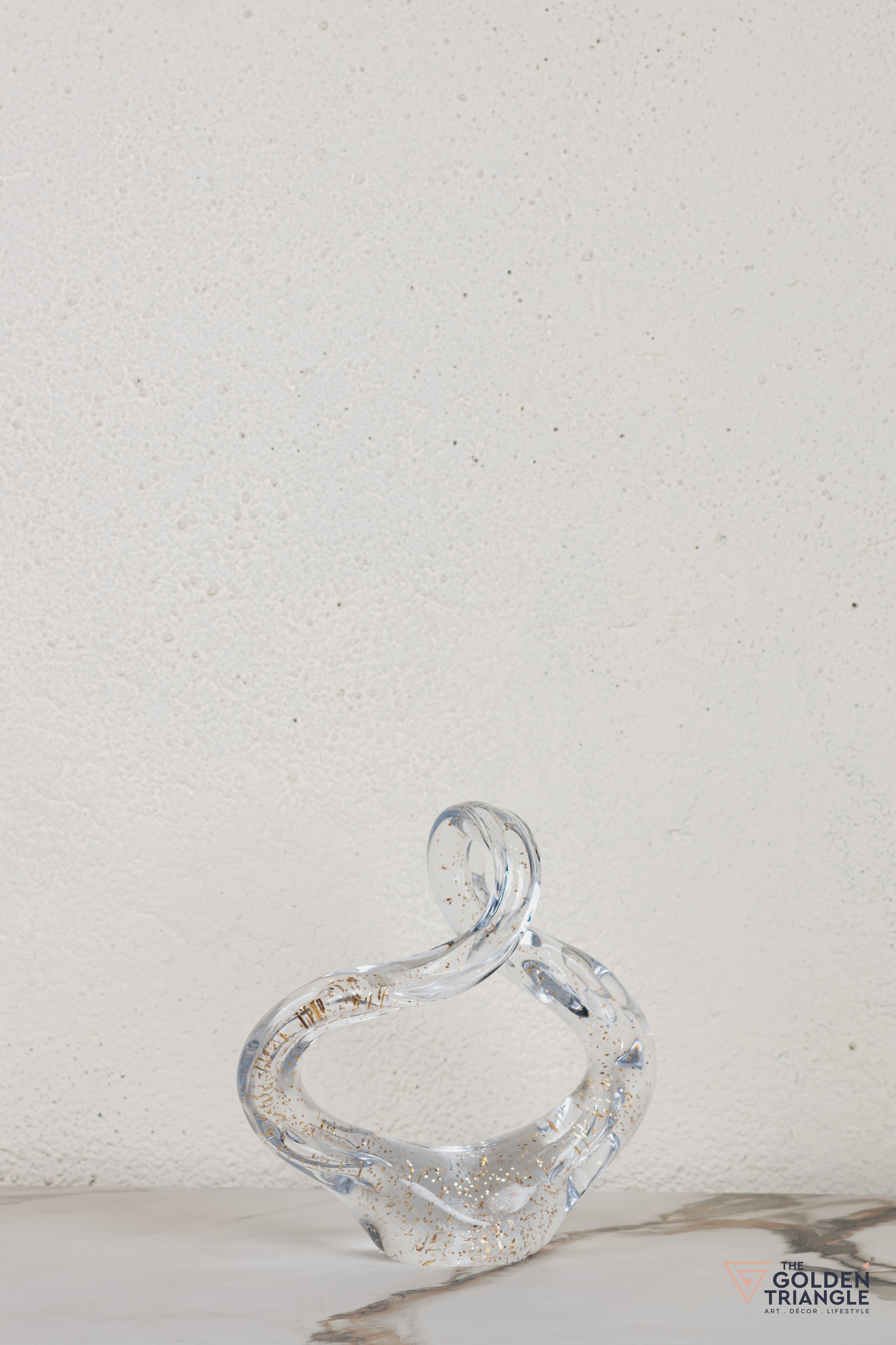 This elegant interlink sculpture, carved from natural glass, blends contemporary minimalism with timeless texture. Its geometric form veining make it a sophisticated accent for coffee tables, bookshelves, or office desks. Whether placed solo or atop a stack of books, it effortlessly draws the eye and adds a curated, artistic touch. Perfect for those who appreciate abstract decor with a modern twist, this piece brings sculptural calm to any setting.