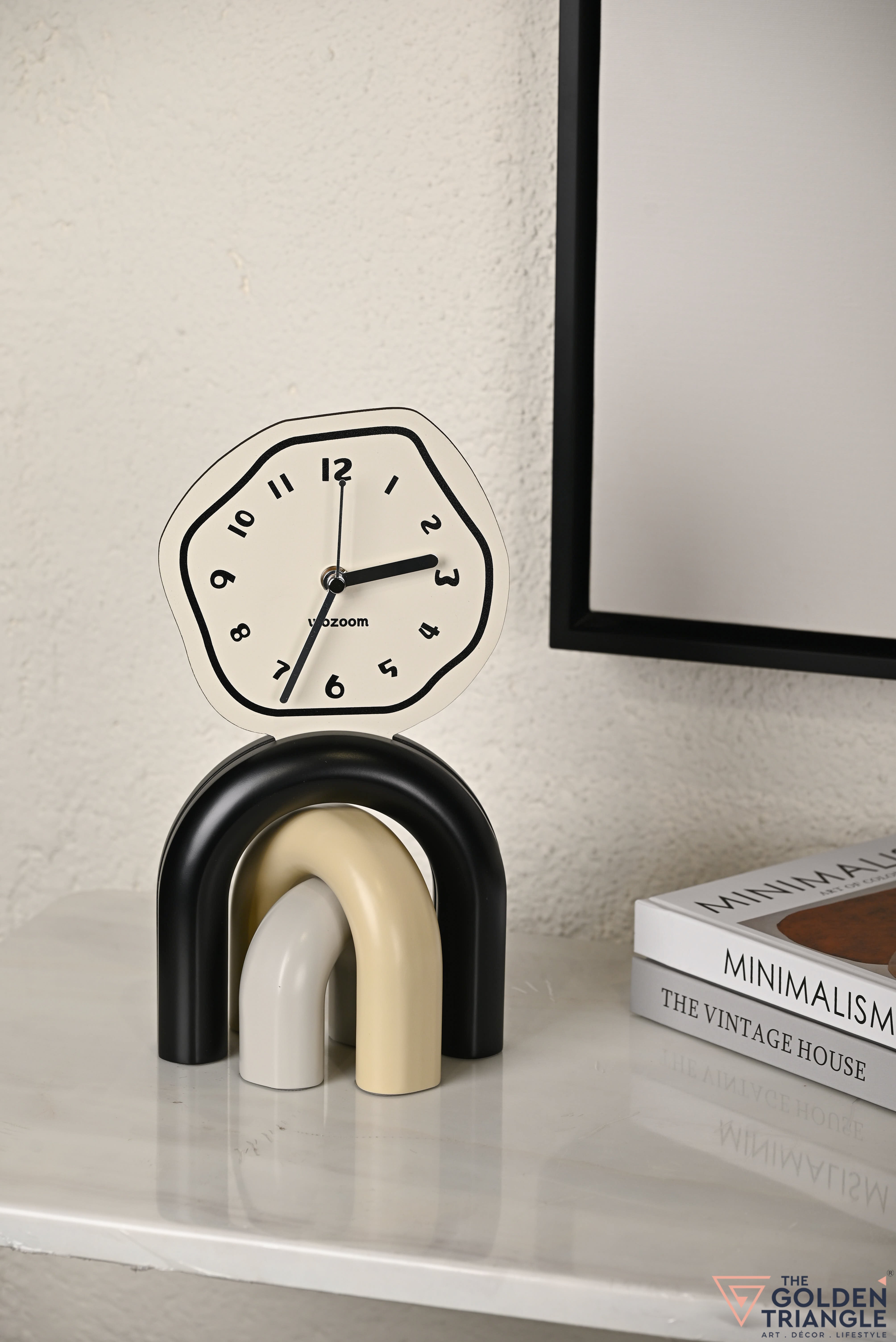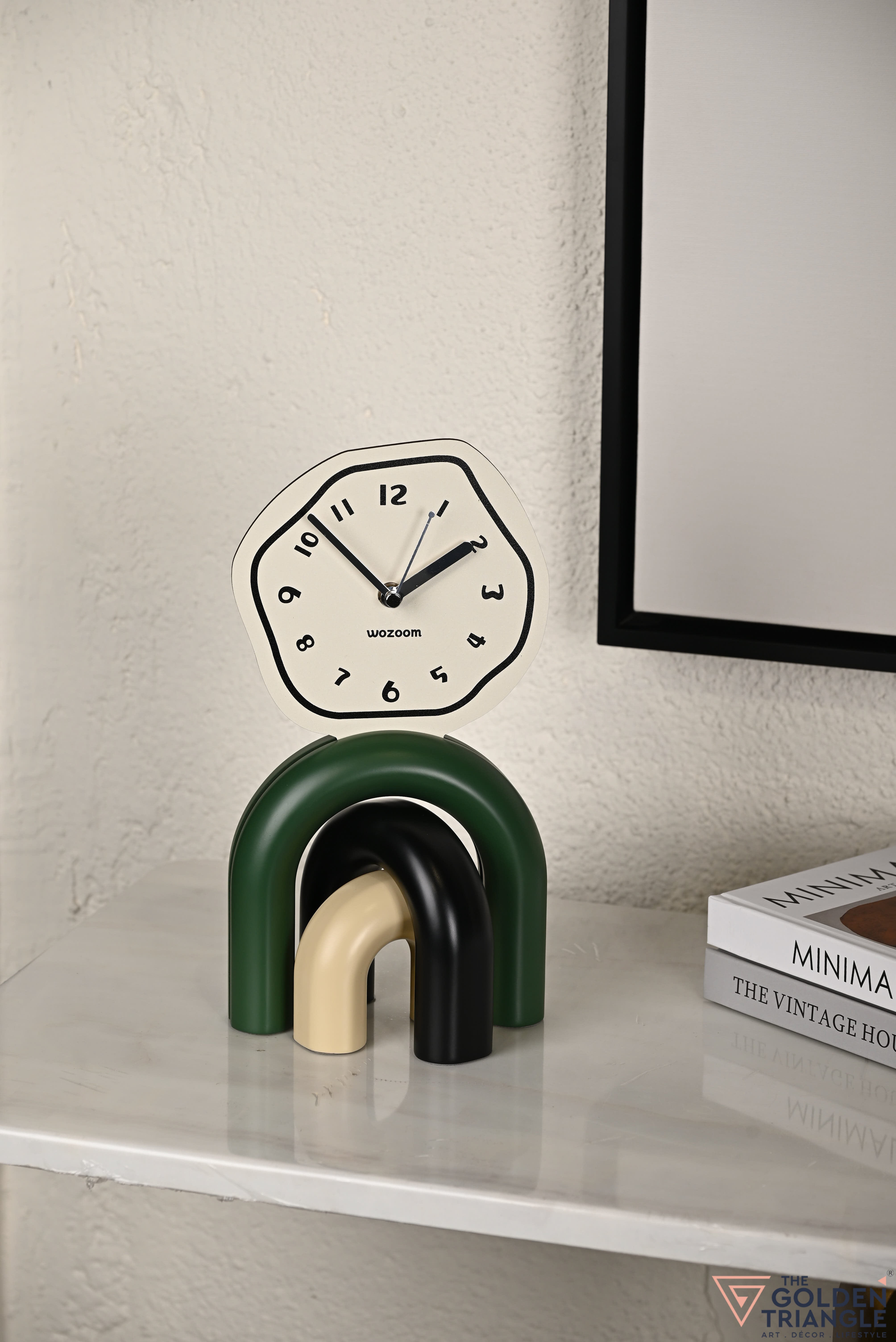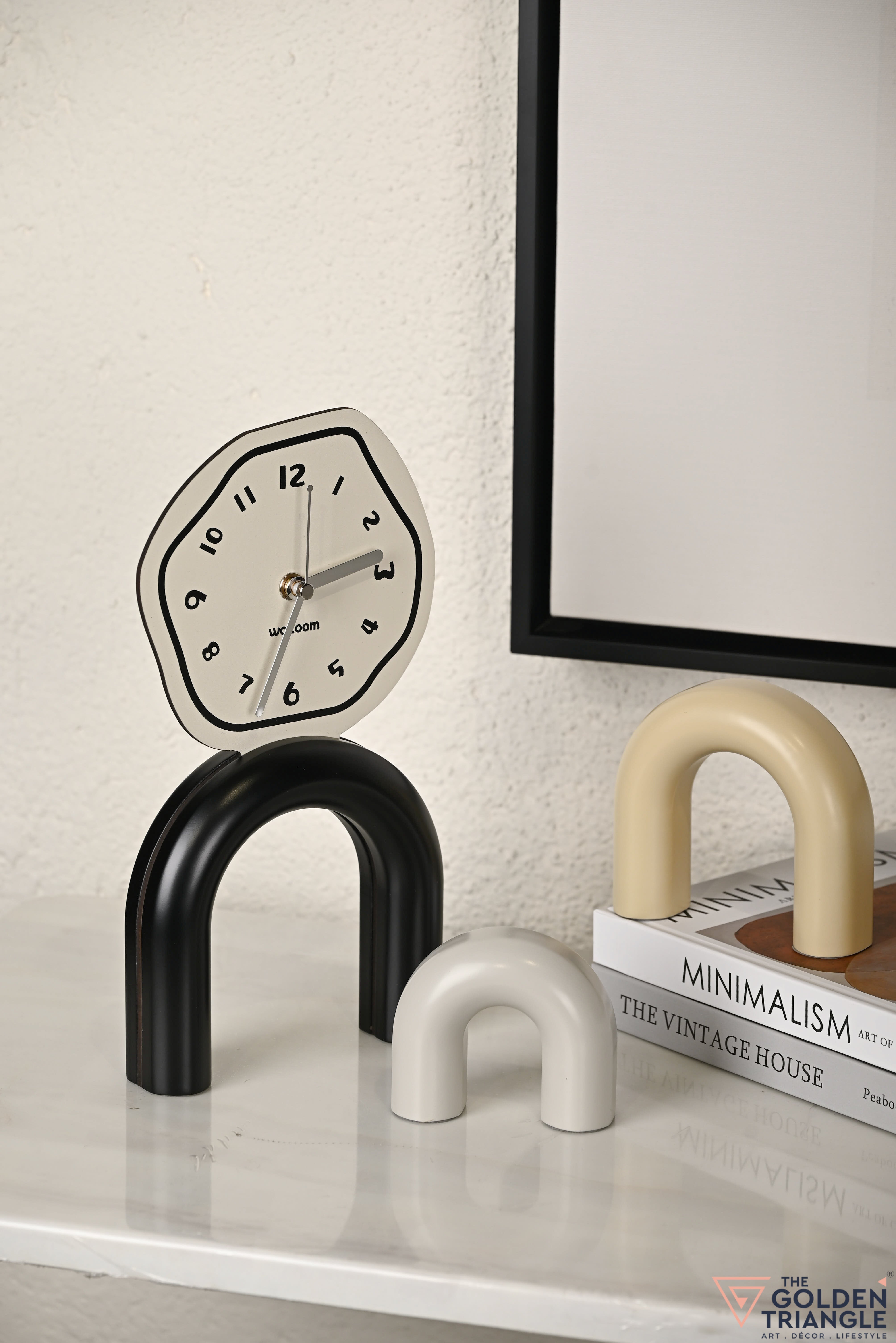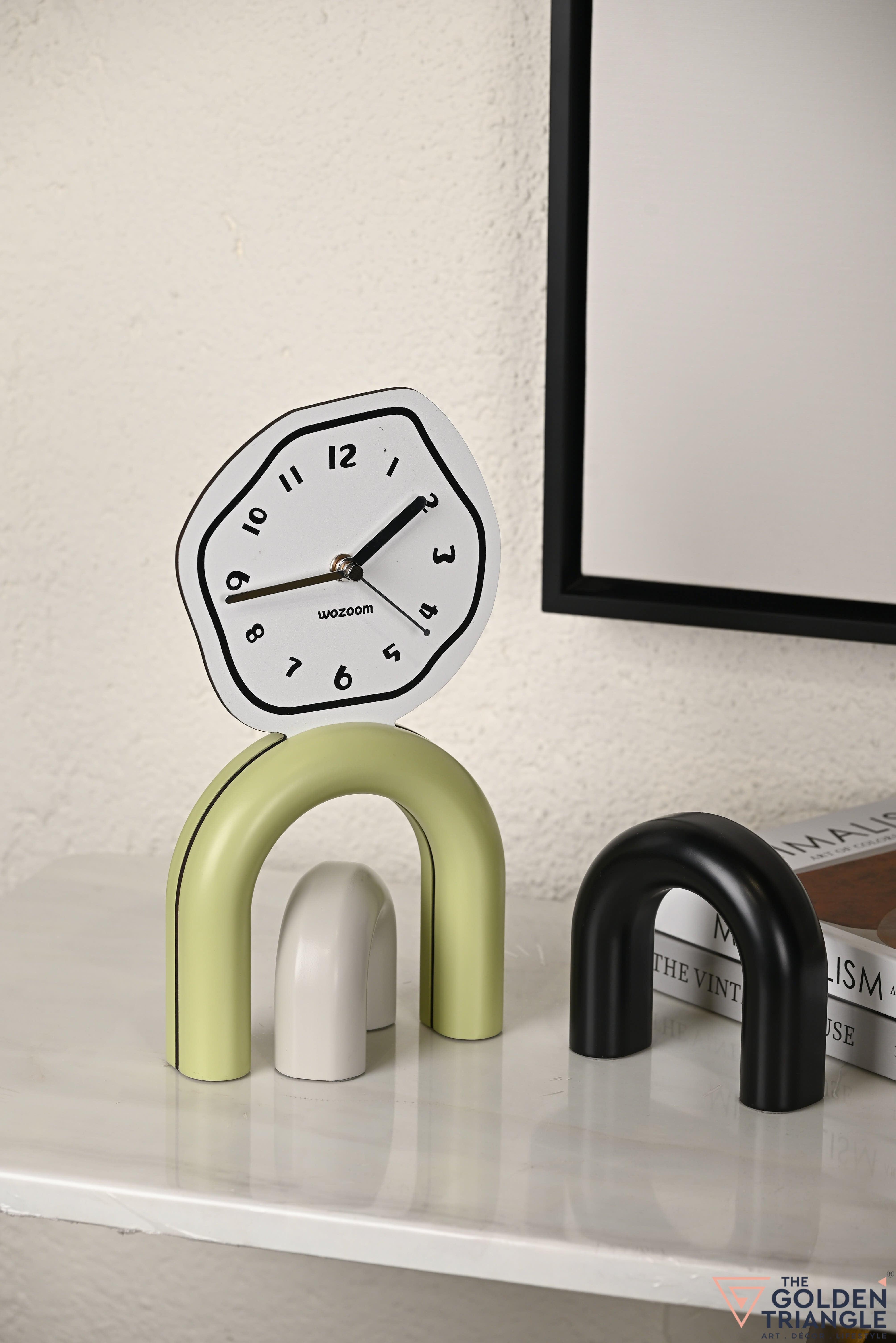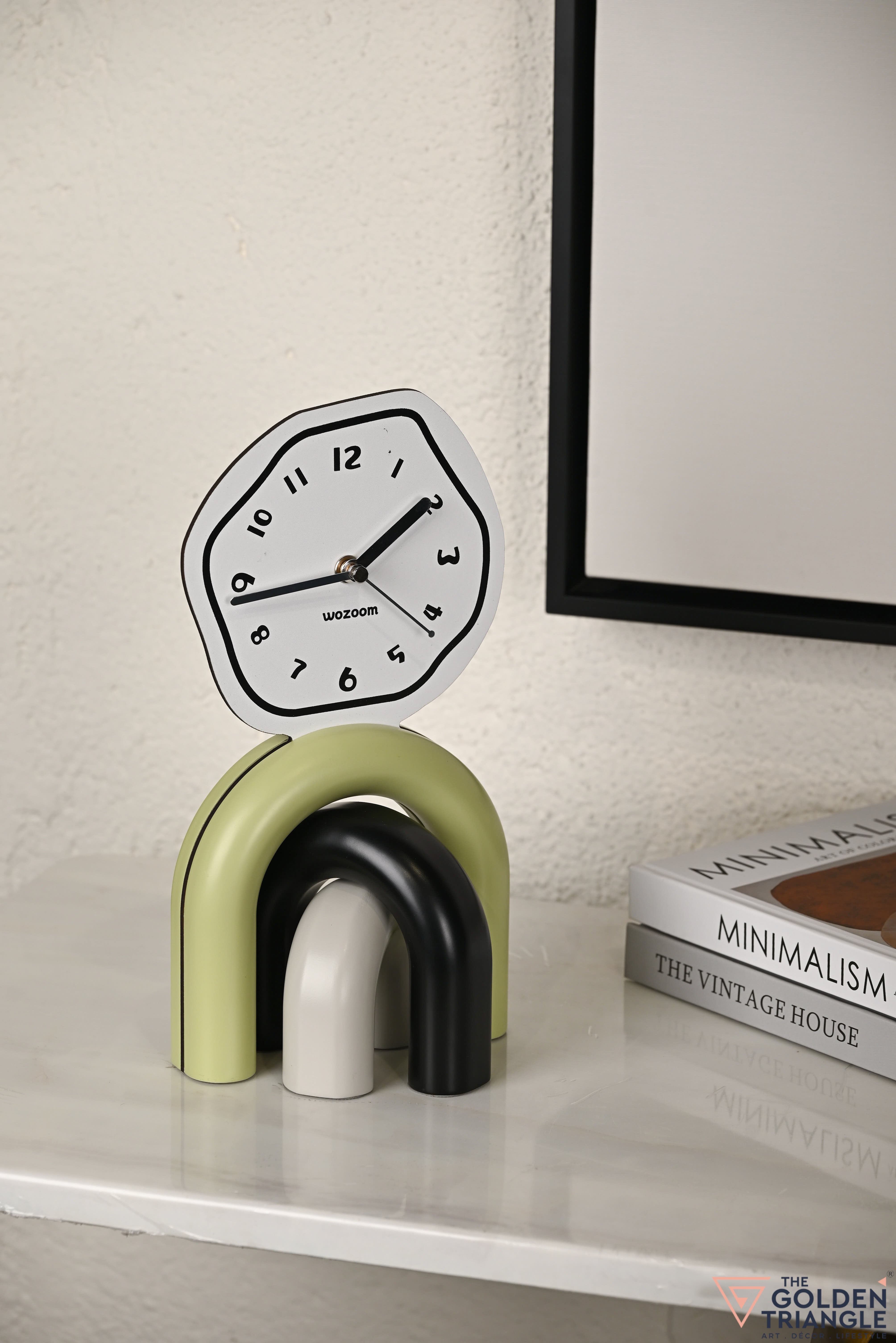 Innovative Design: A stylish table clock featuring a unique, abstract design with modular blocks.