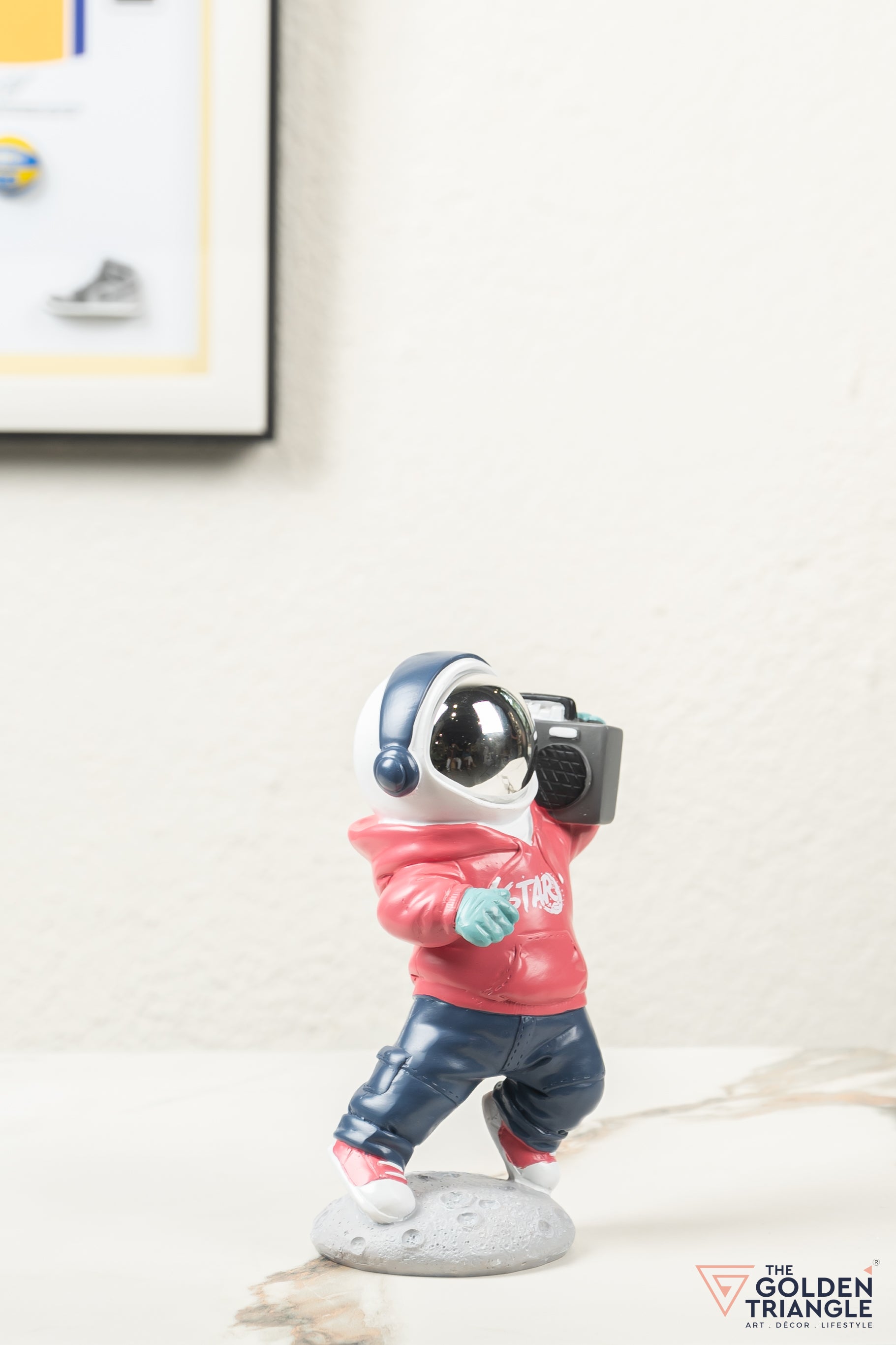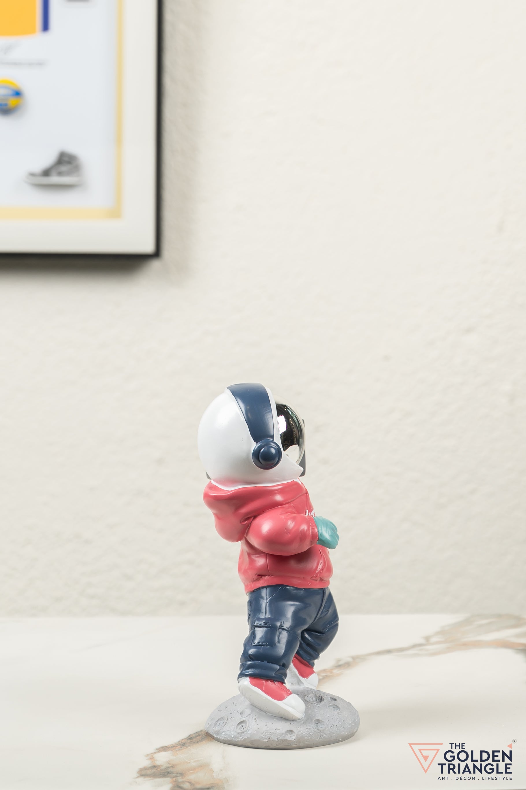 Add a playful, futurist vibe to your space with this quirky astronaut rapper decor piece. Featuring a reflective helmet and bold streetware style, this figurine brings a touch of modern art to any room. Perfect for eclectic and contemporary decor, its a conversation starter. It would look great in a living room, bedroom, office adding a touch of fun and adventure to the space.