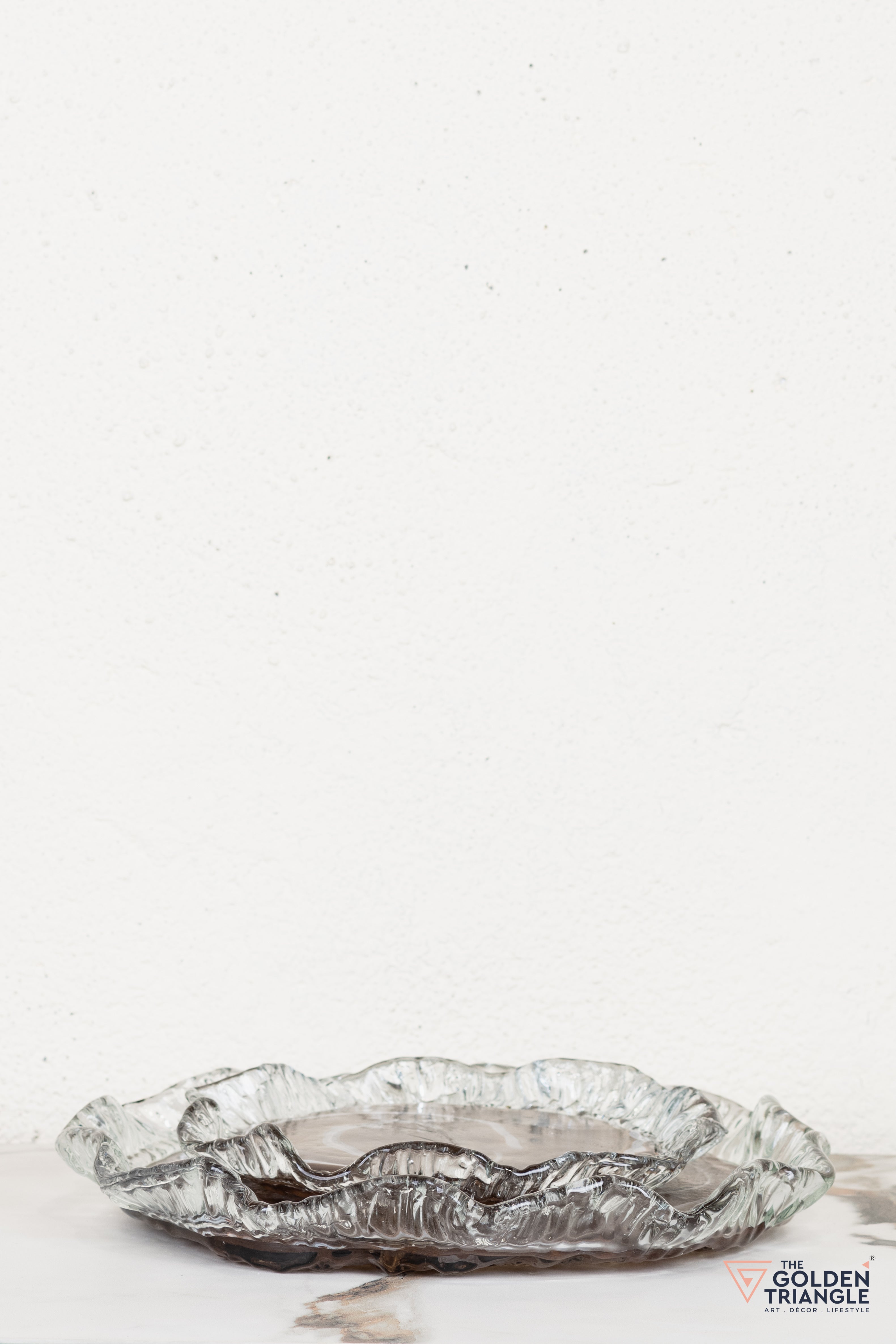 This series of platter with textured top , this glass platter is artfully designed. These raised platters are a great way to display your favourite fruits on your table. You can use them for setting out your favourite nuts, chocolates or snacks as well. They make for a thoughtful choice as a housewarming gift as well or impress your guests with this beautiful timeless glass platter just on display as a nice decoration.