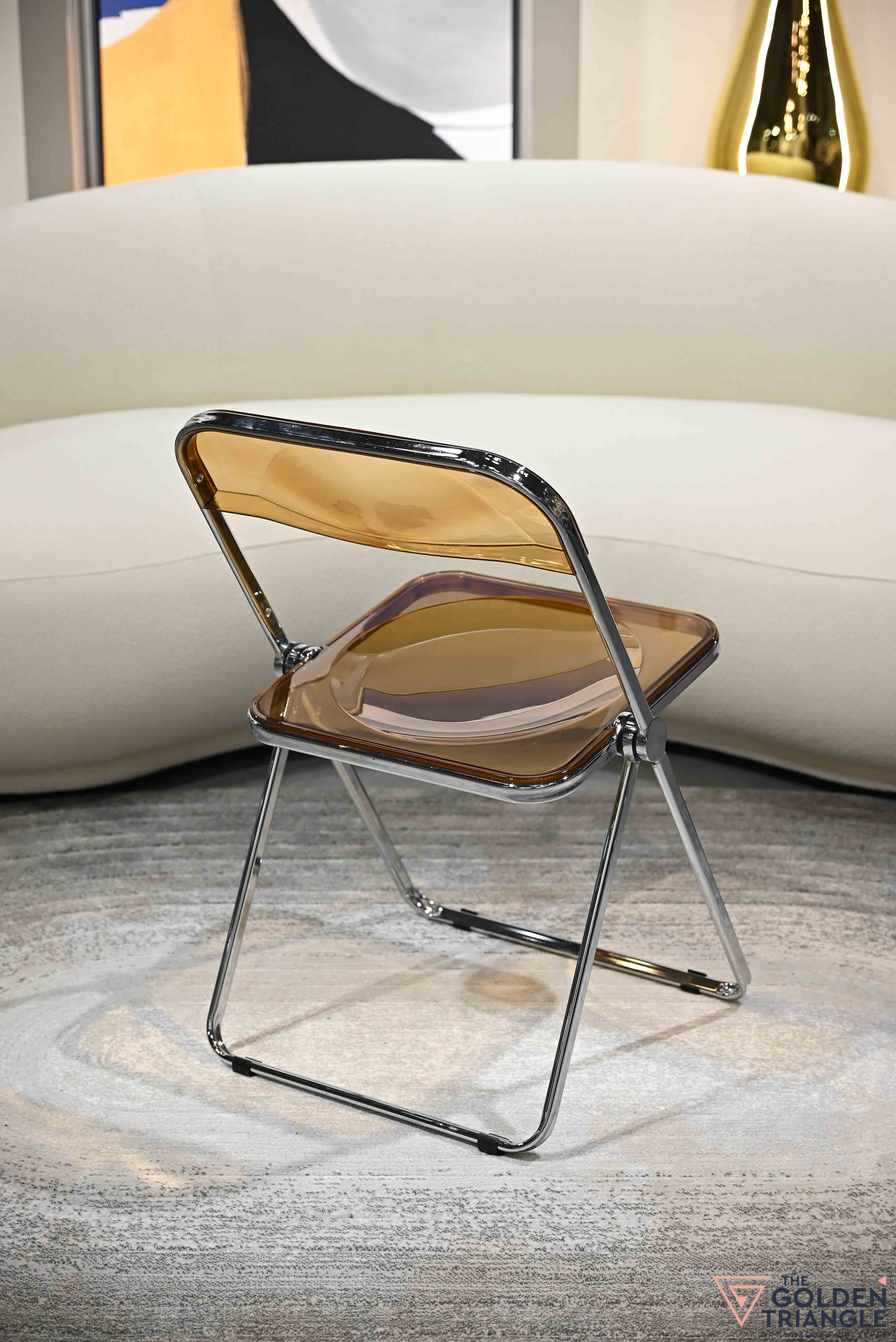 Where modern design meets convenience and style. Introducing our Foldable chair, a chic and contemporary addition to elevate your home, office or any outdoor space. Designed with both aesthetic and functionality in mind, the transparent acrylic seat provides sleek and minimalistic look that effortlessly complements any interior style for modern and industrial to classic and eclectic. The clean lines creates an illusion of space, making it ideal choice for smaller spaces. The stainless steel frame adds a touch of sophistication and also durability, the sturdy frame providing support and stability. The stand out feature is its foldable design, easy to store and port anywhere. Its modern aesthetic, foldable design and durable construction makes it a versatile and stylish seating solution.