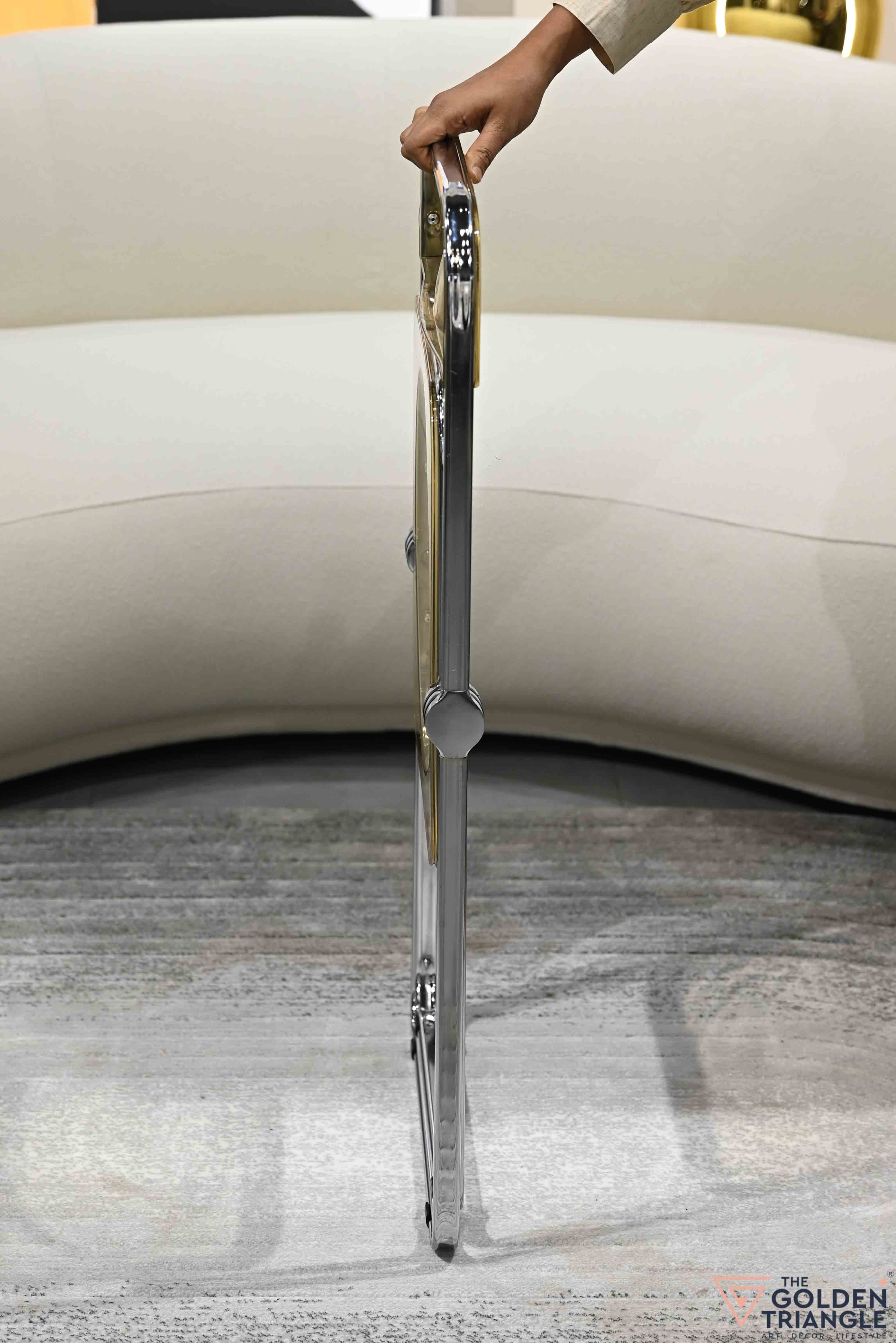 Where modern design meets convenience and style. Introducing our Foldable chair, a chic and contemporary addition to elevate your home, office or any outdoor space. Designed with both aesthetic and functionality in mind, the transparent acrylic seat provides sleek and minimalistic look that effortlessly complements any interior style for modern and industrial to classic and eclectic. The clean lines creates an illusion of space, making it ideal choice for smaller spaces. The stainless steel frame adds a touch of sophistication and also durability, the sturdy frame providing support and stability. The stand out feature is its foldable design, easy to store and port anywhere. Its modern aesthetic, foldable design and durable construction makes it a versatile and stylish seating solution.