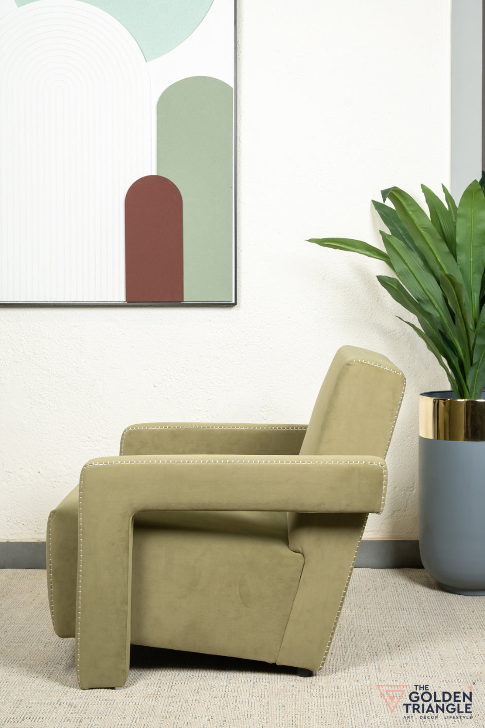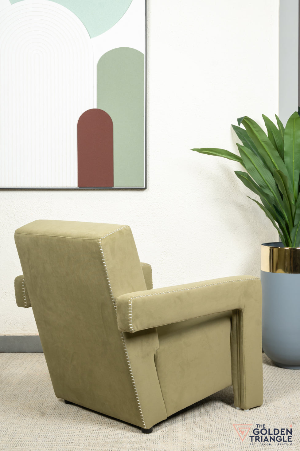 Luxuriously striking, this design eccentric accent chair is for the ultimate for luxe lovers. Its plush seating, bold colour and white detailed stitching and enclosed silhouette makes it everyones favourite abode. Place it next to your couch in the living room, den or office and make it your go to spot to sit and relax.