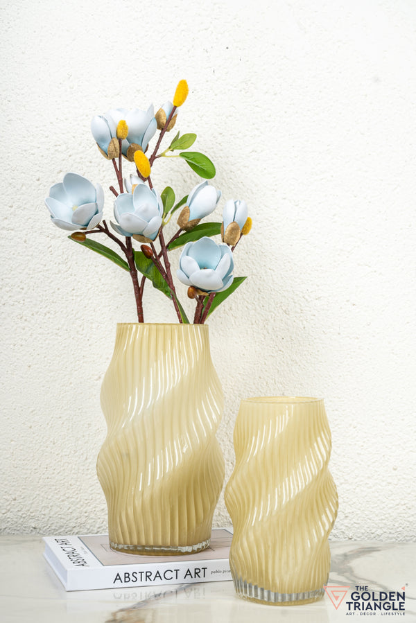 This pastel glass vase in an organic shape is a decorative vase made with soft, muted colour palette and natural and asymmetrical form. It is designed with gentle curves and irregular edges, giving it an organic and handcrafted feeling. Transform your home with our thoughtfully curated collection of home accents, designed to elevate everyday living. These artistic designs not only showcase impeccable craftsmanship but also serve as versatile pieces that complement both contemporary and classic interiors.