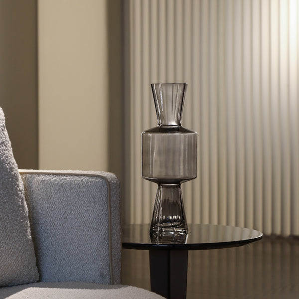 A decorative vase made from coloured glass that has been shaped to resemble a candy. The vase features a hollow center that can be filled with fresh decorative flowers or placed as is. The exterior of the vase is smooth and shiny, with a flared opening shape with a tapering. This playful piece can add a touch of fun to any room or occasion. It can be placed in your living room, bedroom or home office and works as a pretty housewarming gift as well.