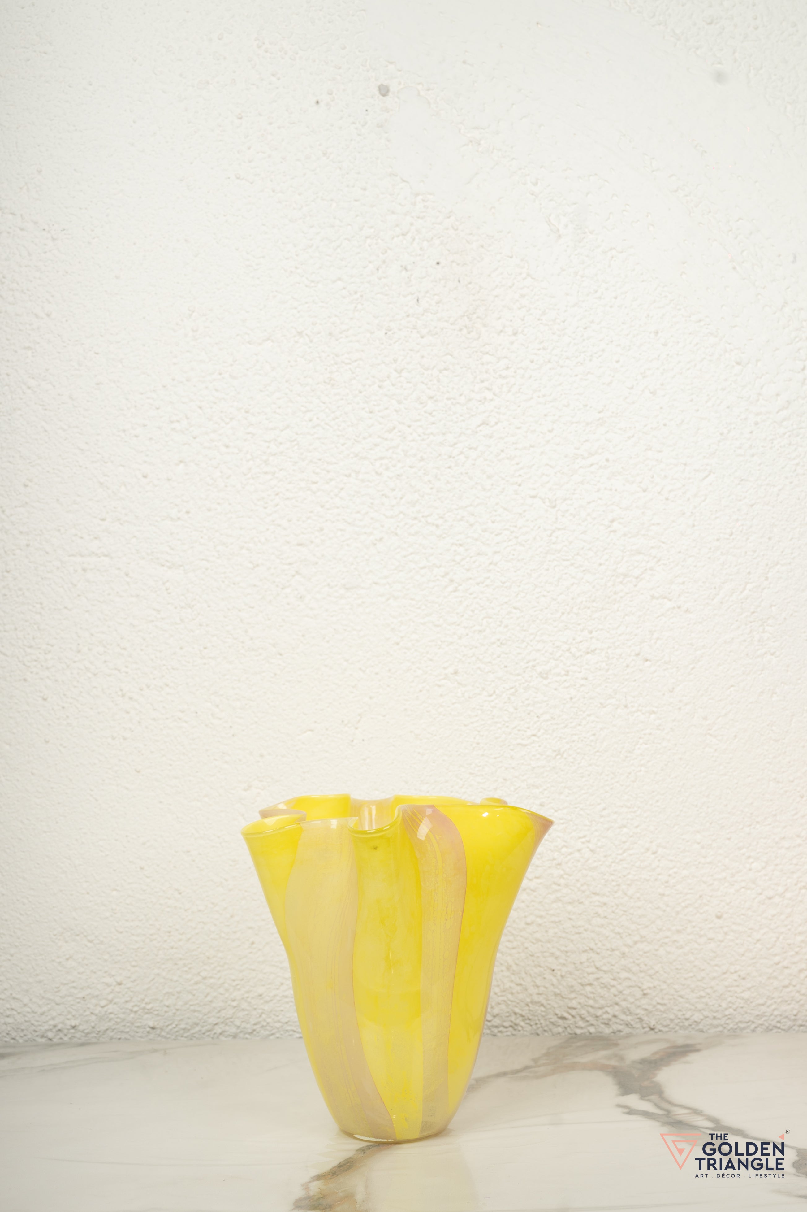Add a touch of charm to your home with The Golden Triangle's elegant glass vases. Featuring a soft yellow hue with graceful swirls, these artistic pieces are perfect for floral displays or as statement decor. Their unique design enhances both contemporary and classic interiors. Visit our Mumbai store or shop online for premium home decor that inspires. Transform your space today!