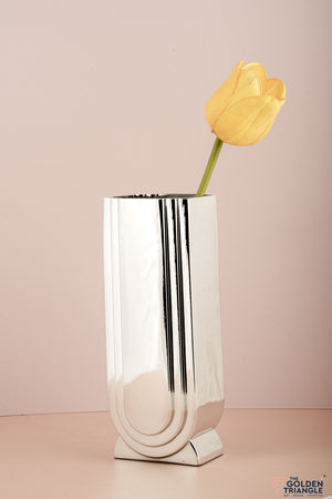 This stylish glass vase is decorated with an abstract shape. A fun modern piece which would look great either filled with your favourite flowers or left empty. A Vase that is elegant as a standalone piece too.
