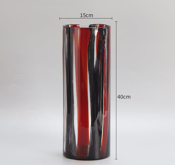 Stripe Swirl Cylindrical Glass Vase - Red & Black