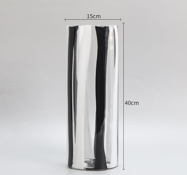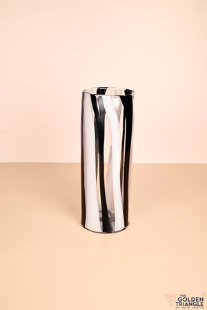 Stripe Swirl Cylindrical Glass Vase - White & Black
