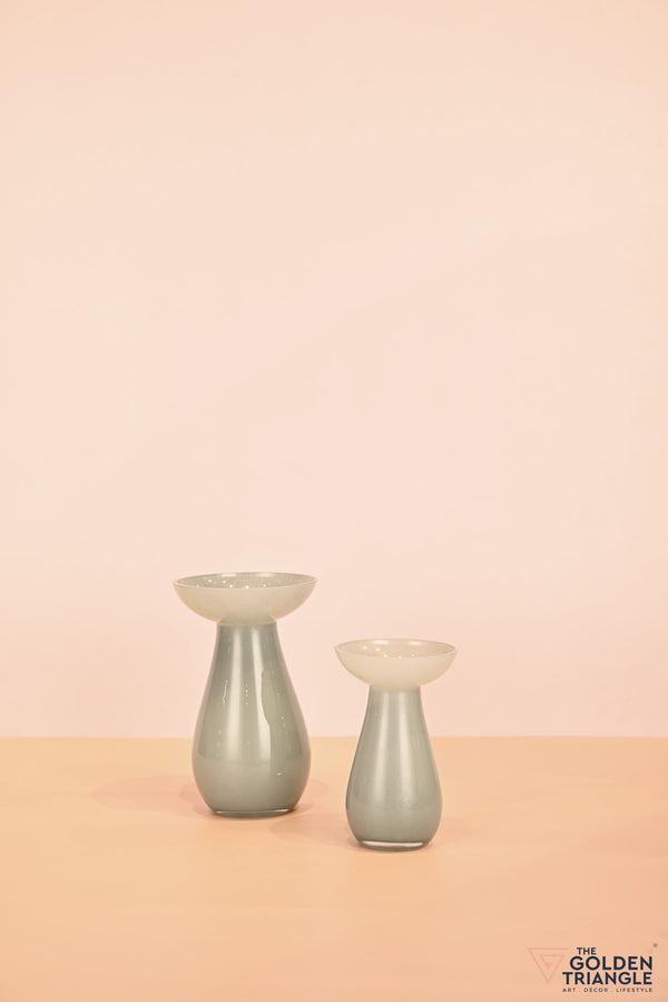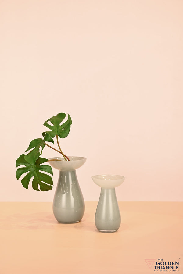 This pastel glass vase in an organic shape is a decorative vase made with soft, muted colour palette and natural and asymmetrical form. It is designed with gentle curves and irregular edges, giving it an organic and handcrafted feeling. The soft pastel colour creates a subtle, calming effect that be used to hold beautiful flowers or other decorative items to add a touch of whimsy and charm to your living room, bedroom or office. The organic shape and pastel colour makes it a popular choice for those who prefer a more relaxed and natural aesthetic in their home decor..