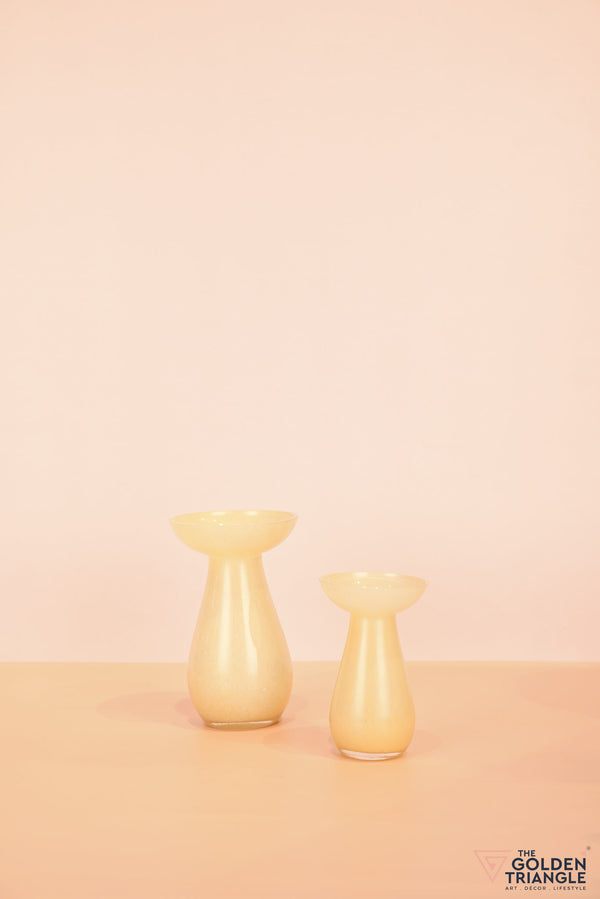 This pastel glass vase in an organic shape is a decorative vase made with soft, muted colour palette and natural and asymmetrical form. It is designed with gentle curves and irregular edges, giving it an organic and handcrafted feeling. The soft pastel colour creates a subtle, calming effect that be used to hold beautiful flowers or other decorative items to add a touch of whimsy and charm to your living room, bedroom or office. The organic shape and pastel colour makes it a popular choice for those who prefer a more relaxed and natural aesthetic in their home decor..