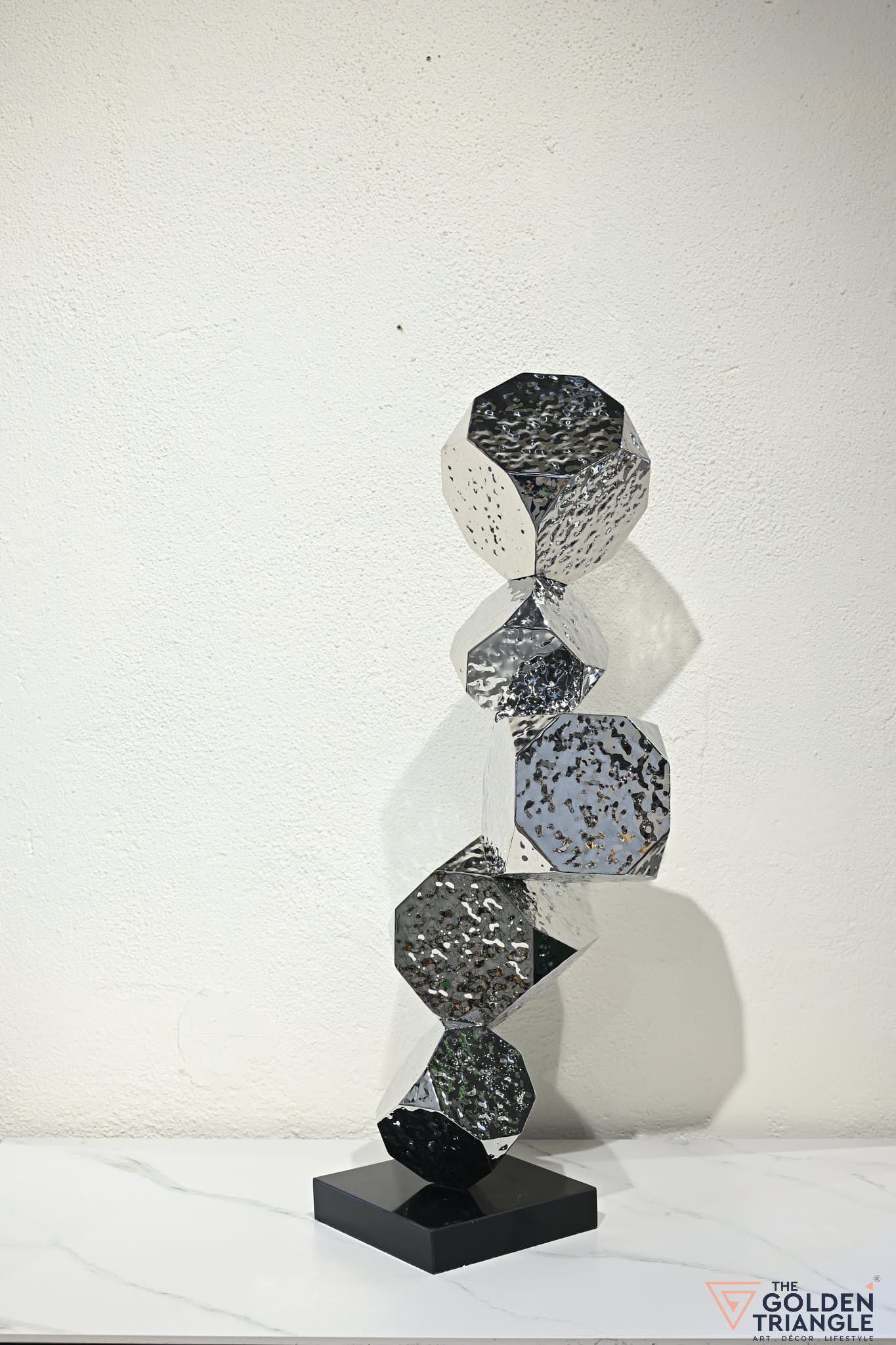 Discover unparalleled sophistication with our abstract sculpture, a masterpiece destined to elevate your home décor. Standing atop a marble base, this sculpture boasts an alluring finish. Its avant garde design adds a touch of modernity and elegance to any living space, captivating the eye. Crafted with precision and attention to detail, this sculpture is the epitome of luxury, seamlessly blending contemporary aesthetics with timeless charm.