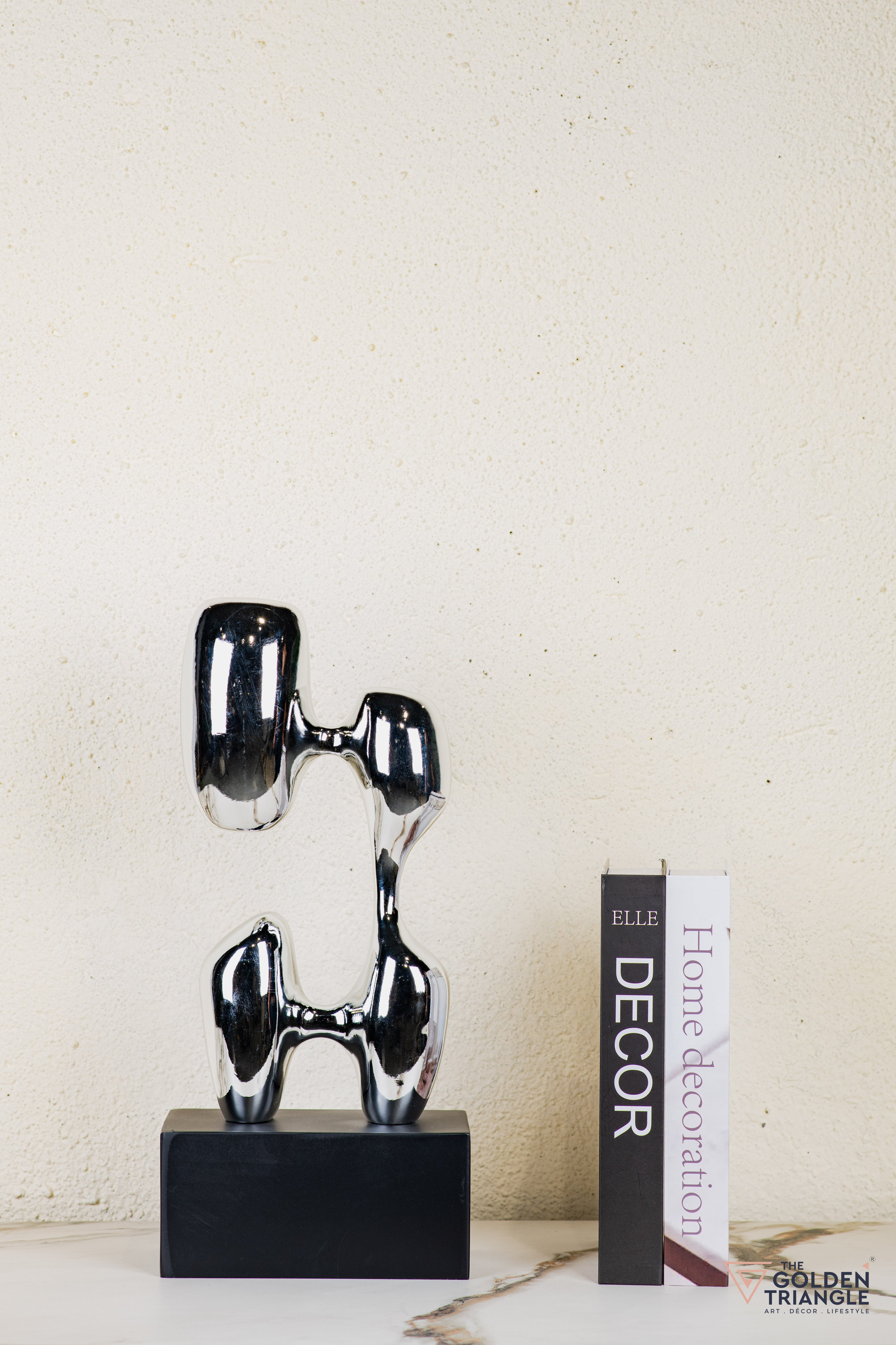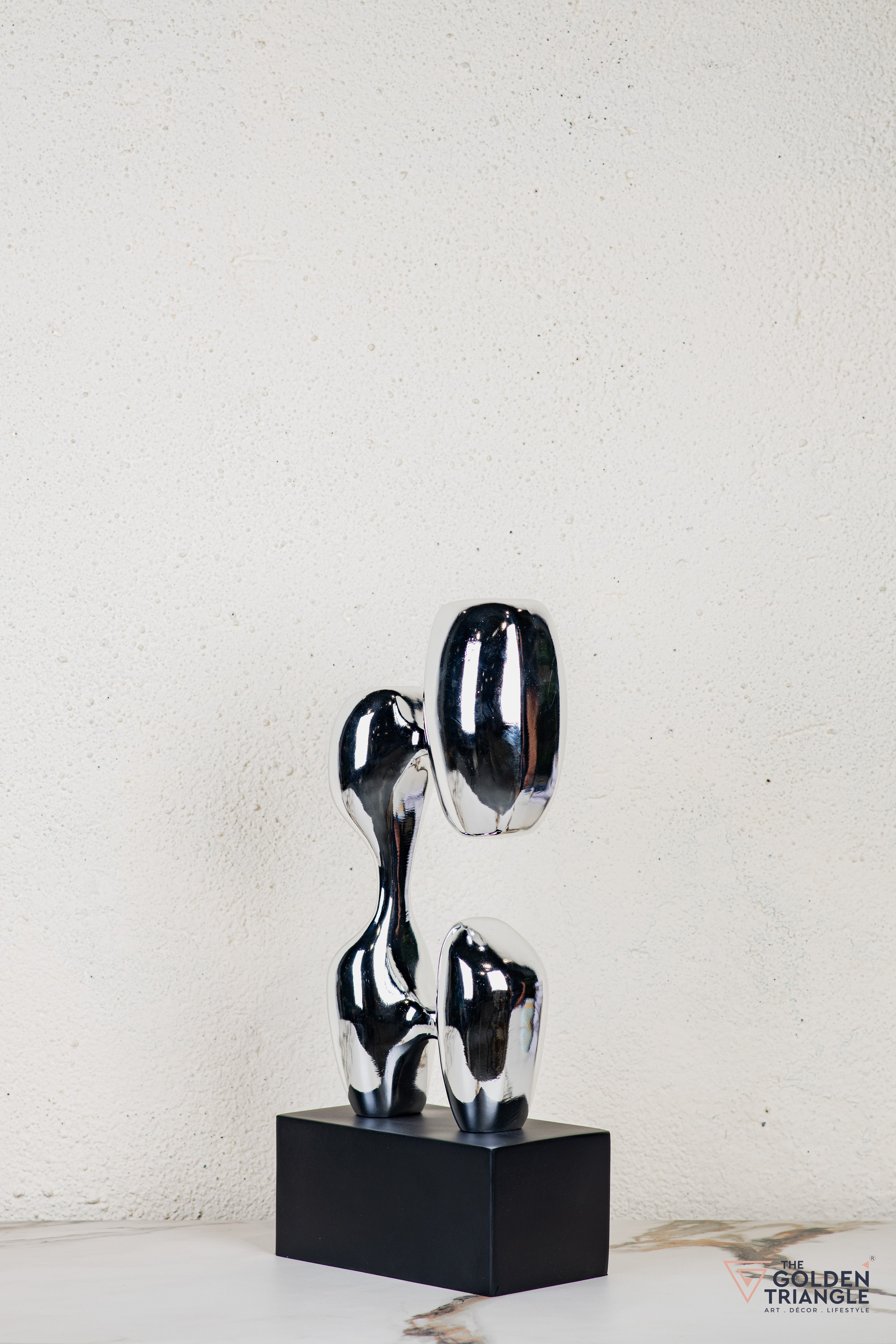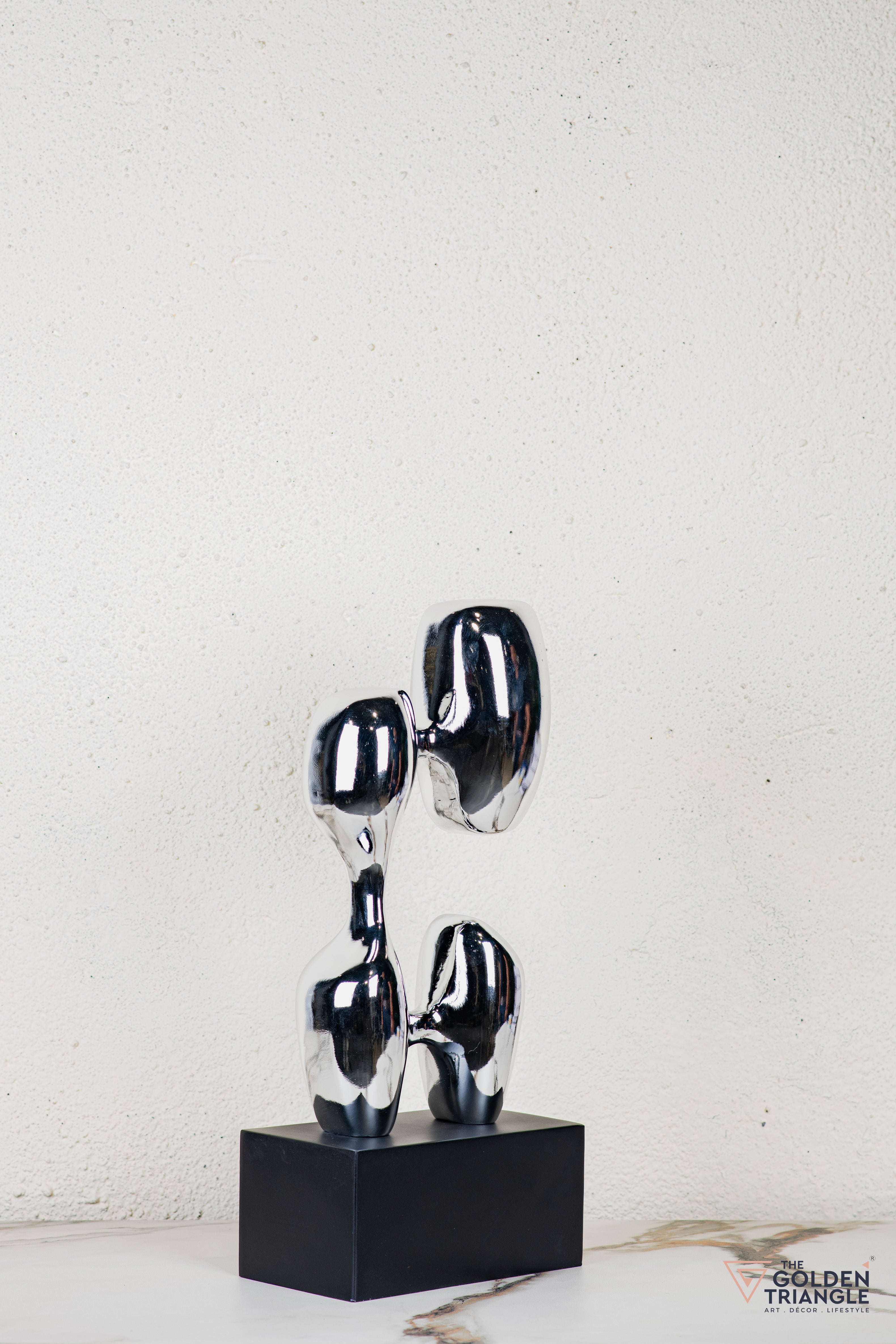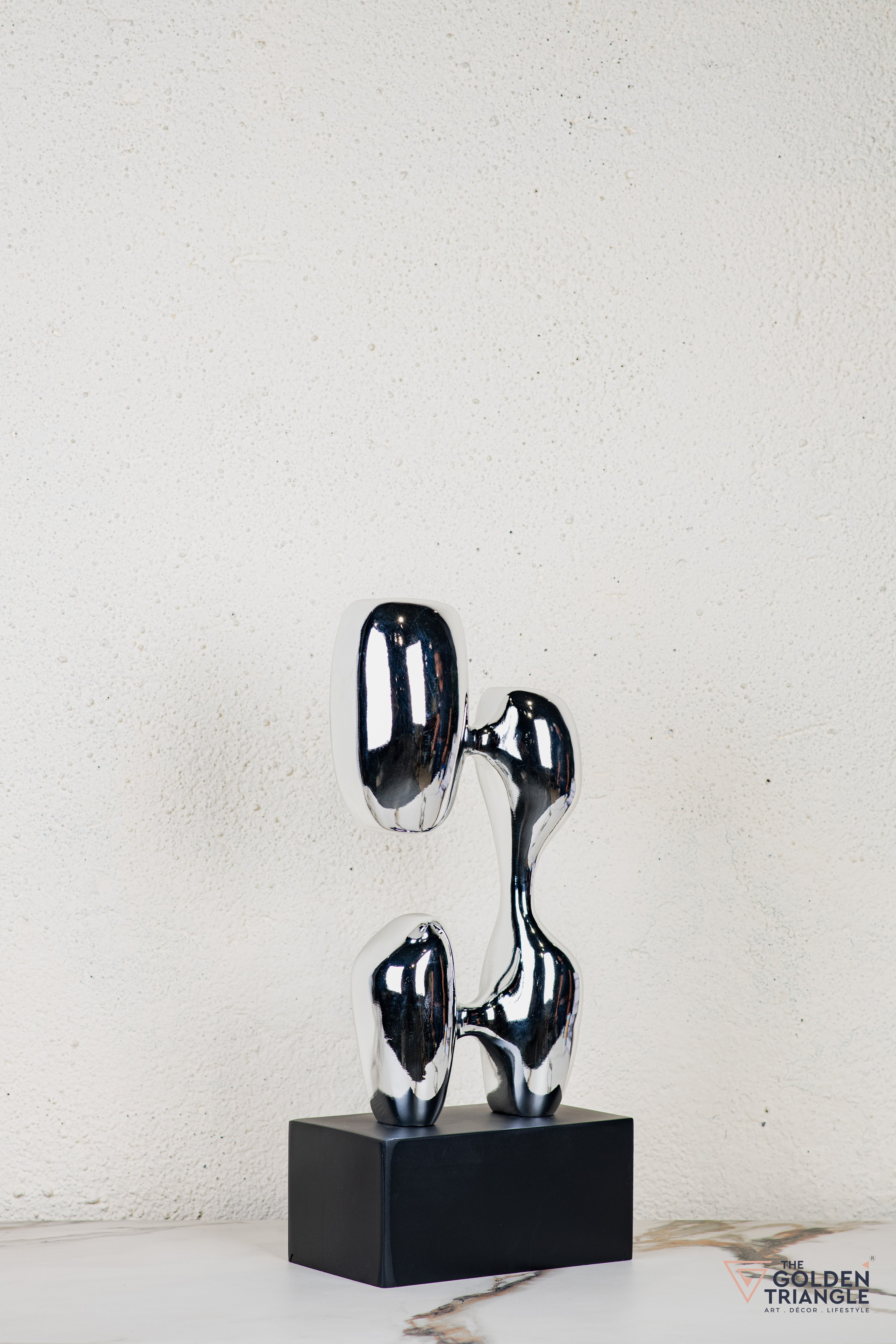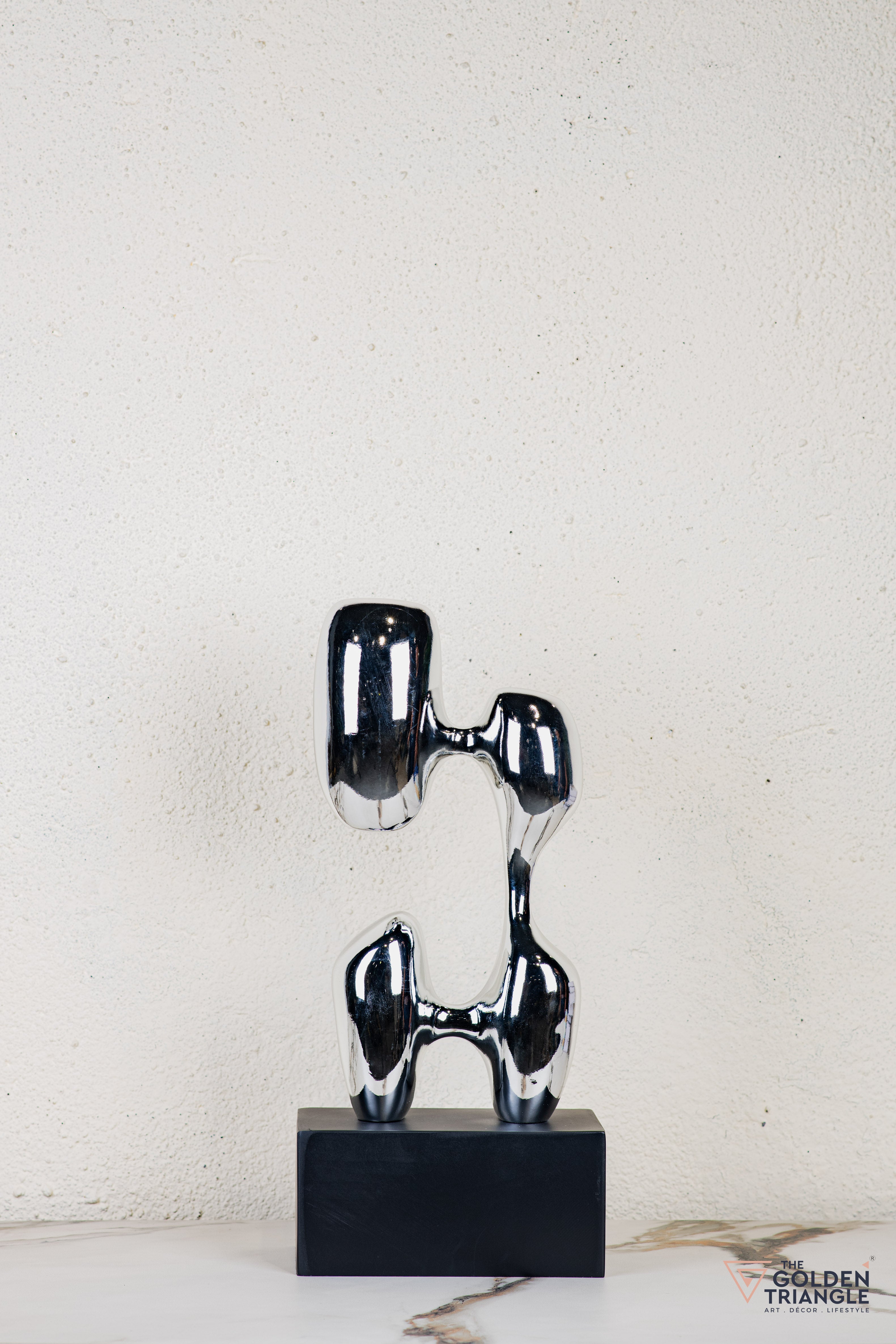Discover unparalleled sophistication with our abstract sculpture, a masterpiece destined to elevate your home décor. This sculpture boasts an alluring electroplated finish. Its avant garde design adds a touch of modernity and elegance to any living space, captivating the eye. Crafted with precision and attention to detail, this sculpture is the epitome of luxury, seamlessly blending contemporary aesthetics with timeless charm.