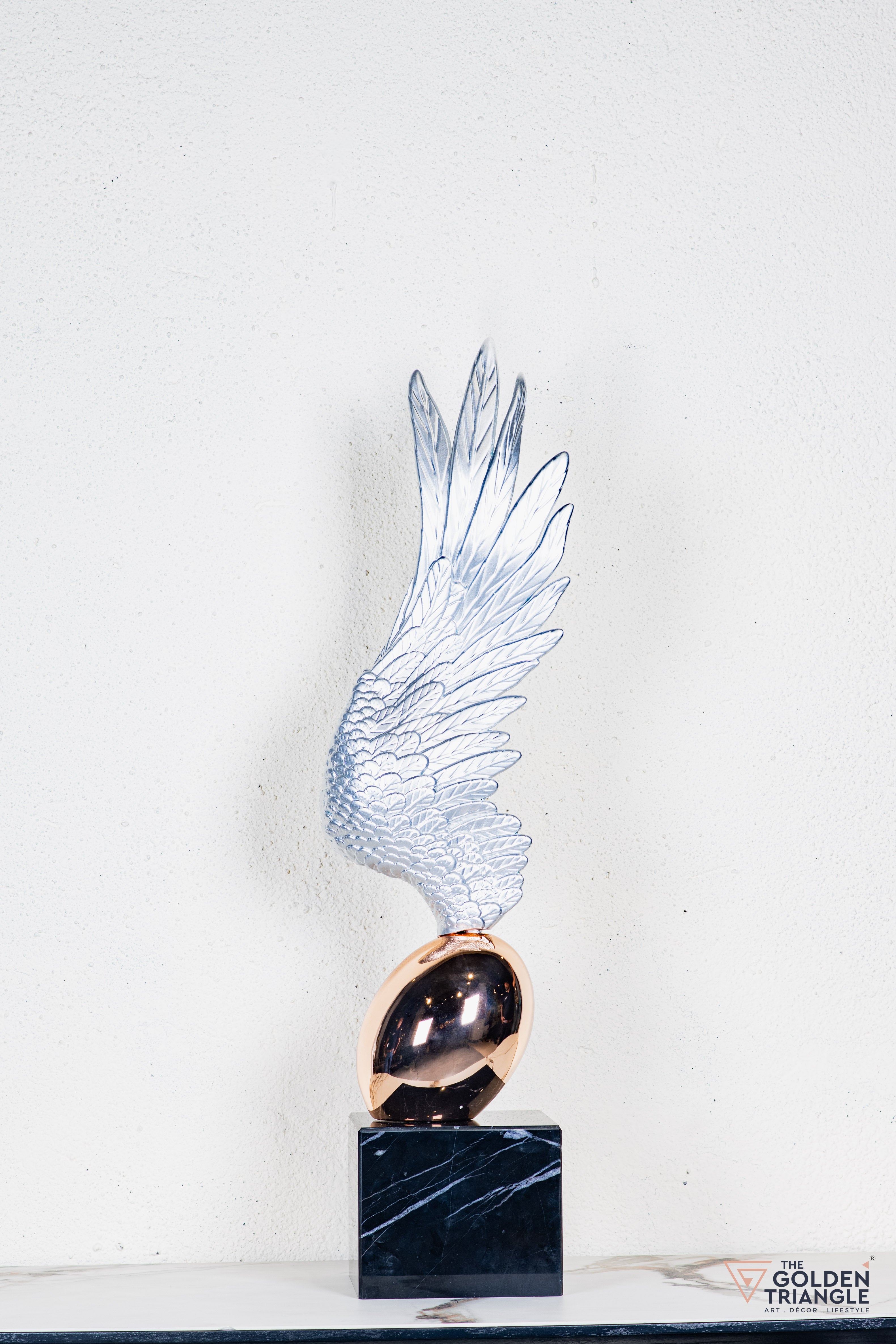 Discover unparalleled sophistication with our abstract sculpture, a masterpiece destined to elevate your home décor. This sculpture boasts an alluring electroplated finish. Its avant garde design adds a touch of modernity and elegance to any living space, captivating the eye. Crafted with precision and attention to detail, this sculpture is the epitome of luxury, seamlessly blending contemporary aesthetics with timeless charm.