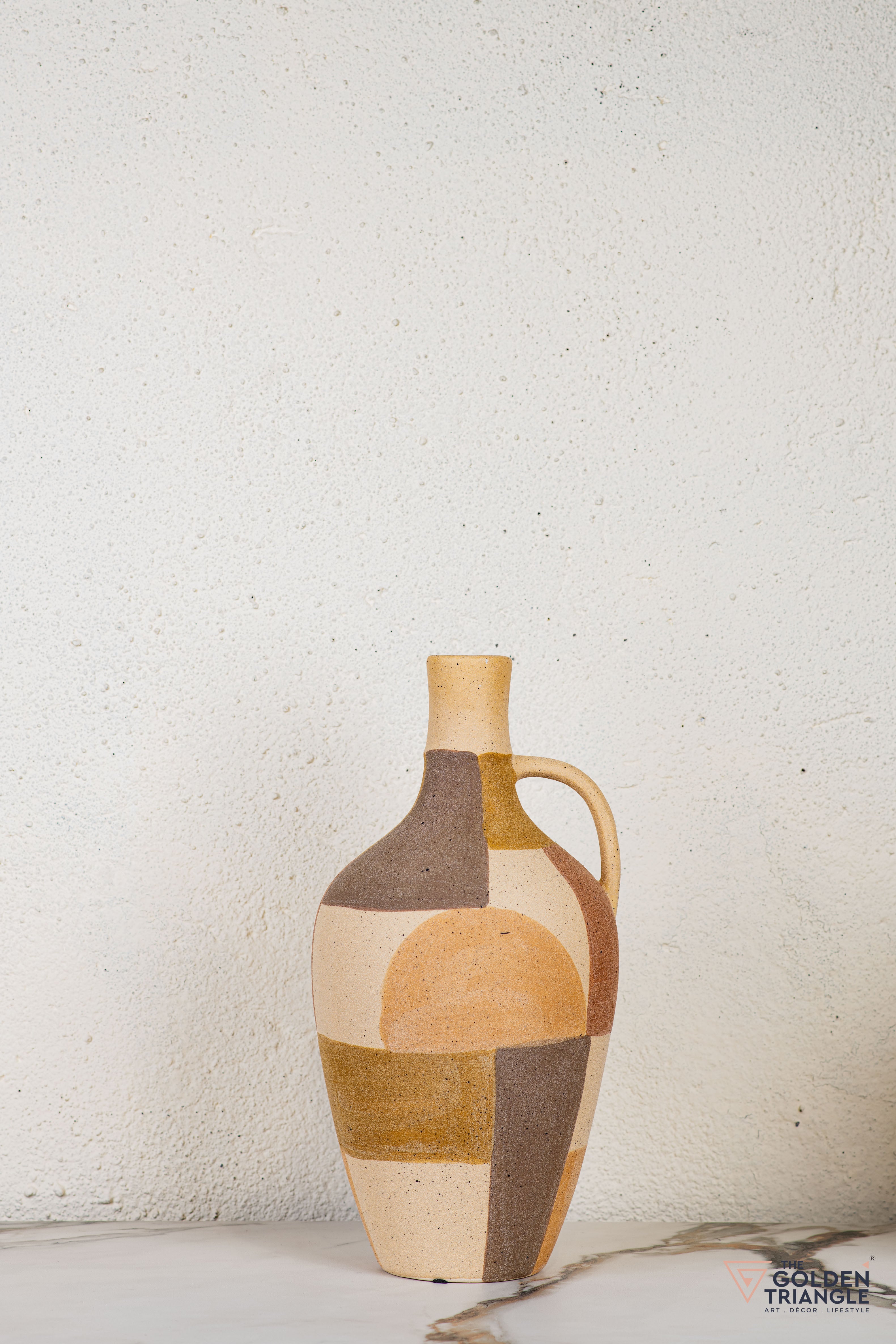 Bold and beautifully abstract, this ceramic tabletop vase is a sculptural statement piece that instantly draws the eye. Its fluid, hand-molded form and rich finish give it an edgy yet elegant appeal, perfect for contemporary interiors. Use it to display dry branches or keep it empty—it speaks volumes on its own. Whether styled on a console, sideboard, or work desk, it adds a dash of modern artistic flair to your space.