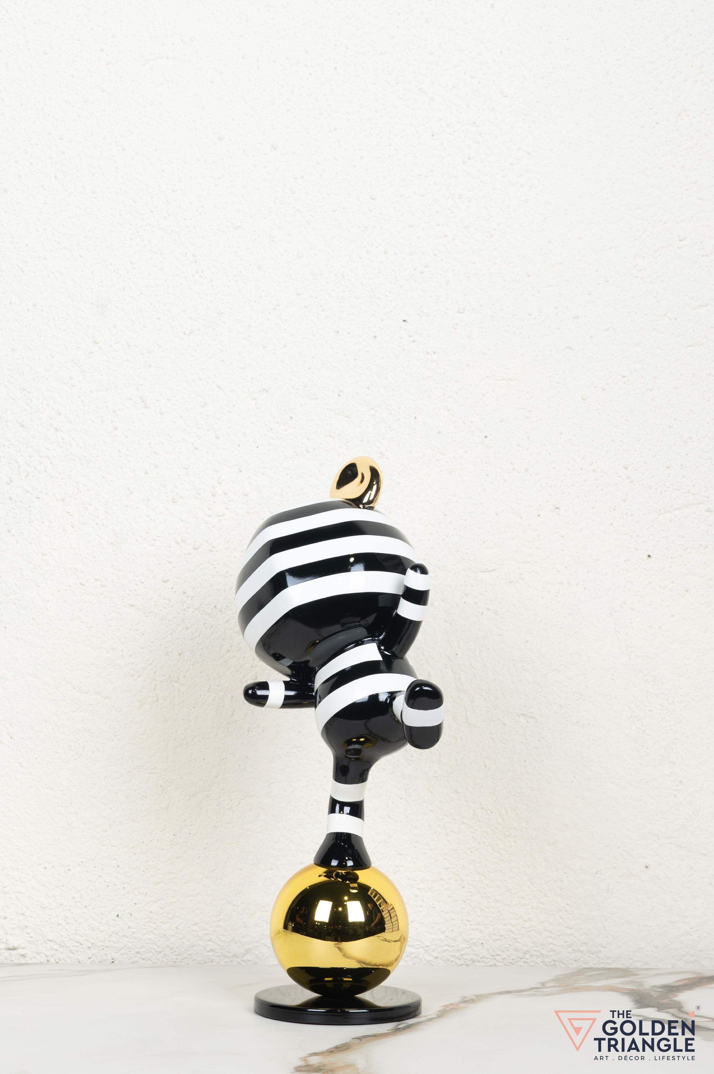 Add a playful touch to your space with this eye-catching Balancing Act artefact. Designed to spark curiosity and joy, this unique decorative piece features a whimsical character performing an acrobatic pose on a gleaming golden sphere. Its vibrant orange-and-white striped design, complemented by glossy gold accents, makes it a striking addition to any modern home. Ideal for art lovers and collectors, this piece makes a fantastic gift for those who appreciate bold, contemporary decor with a twist of whimsy. Elevate your interiors with this delightful artefact and let it inspire joy in every glance.