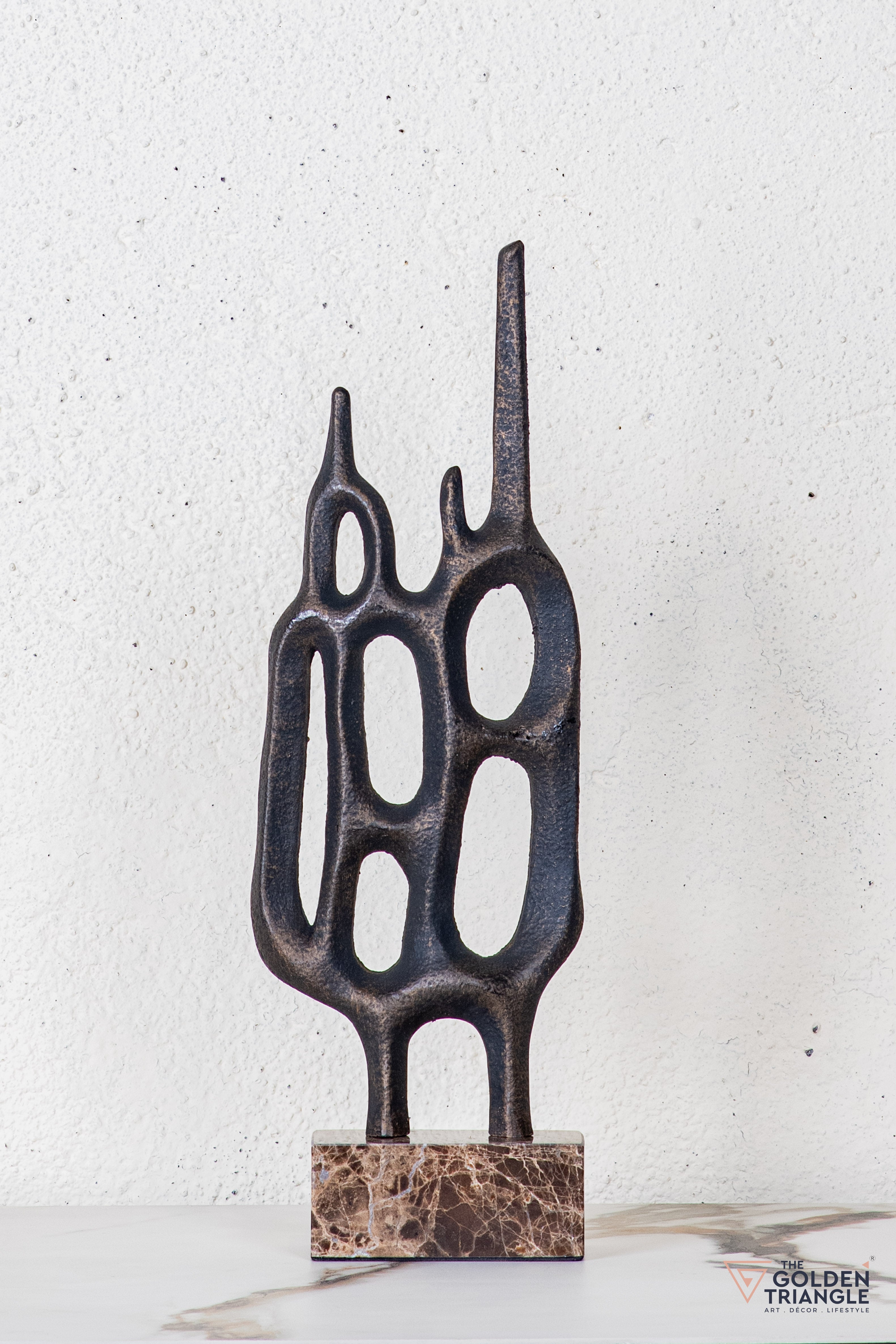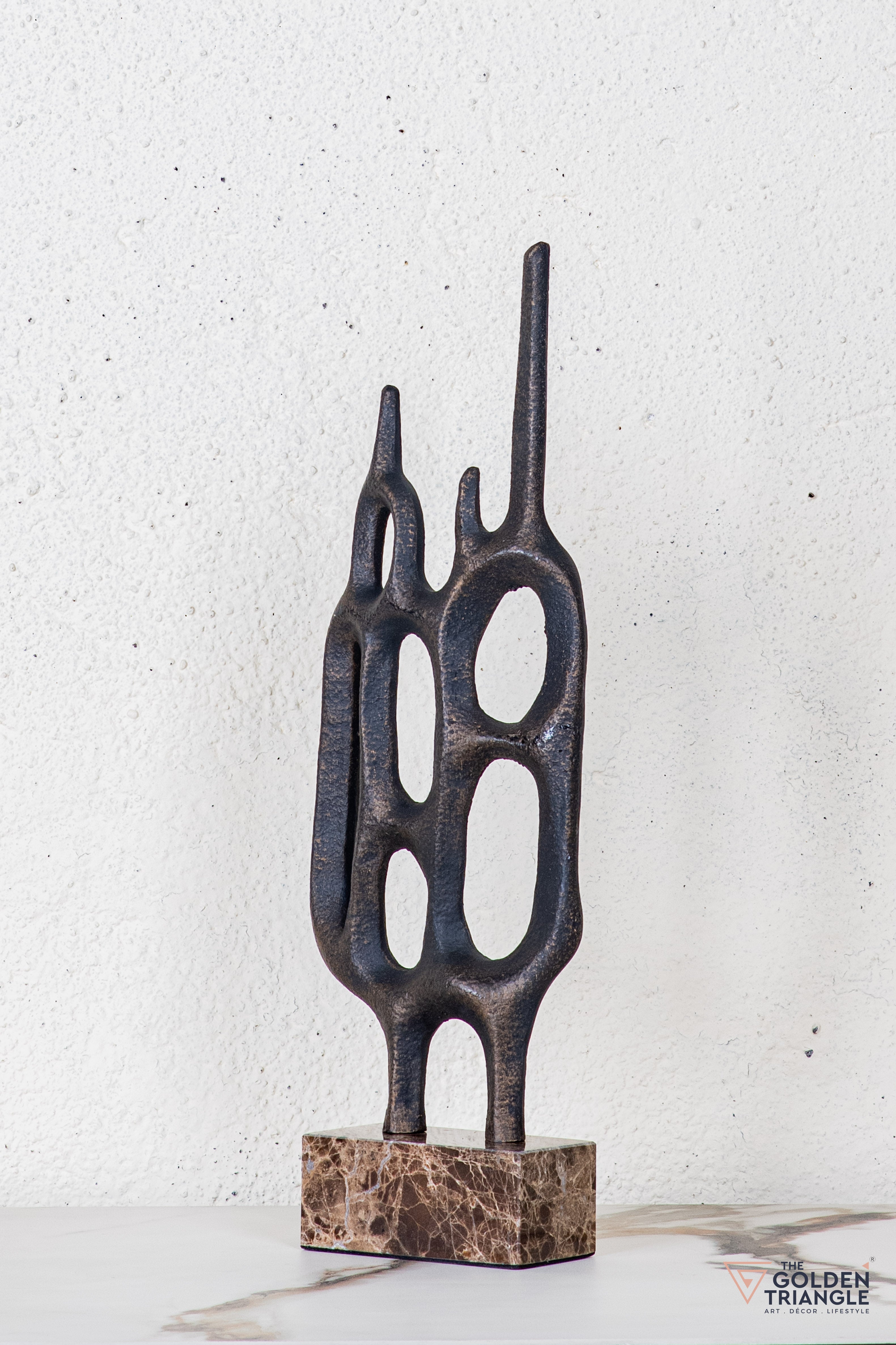 "Add a modern focal point to your console or coffee table with the Artezza Collection. These striking sculptures blend contemporary art with timeless sophistication, featuring fluid, openwork designs that let light and shadow play through the form. The contrast between the rough-textured metal finishes and the polished marble plinth creates a look that is both industrial and refined. Perfect for those who appreciate design that speaks volumes without saying a word."