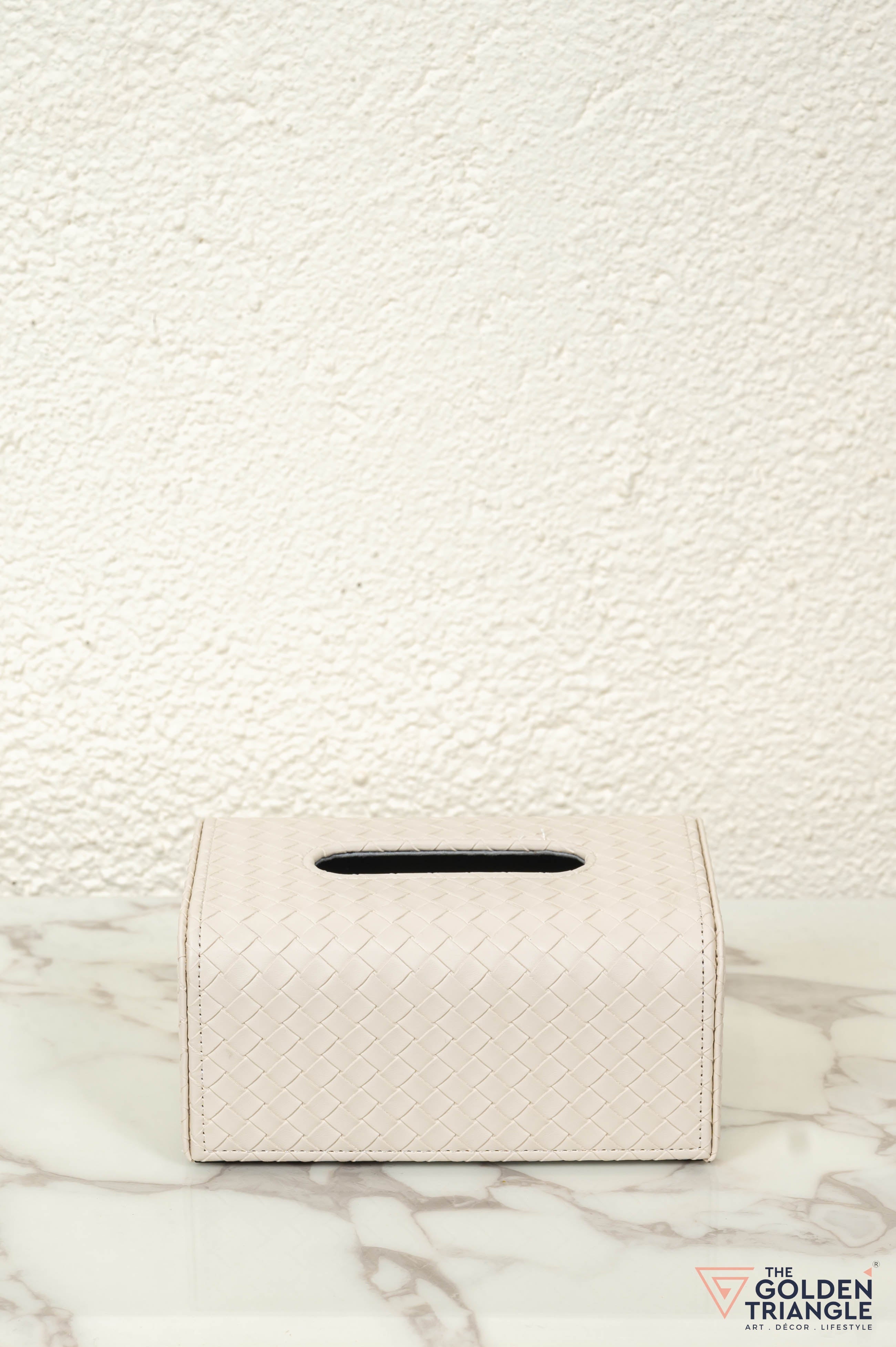 - Mavi Weaved Leatherette Tissue Box - Beige