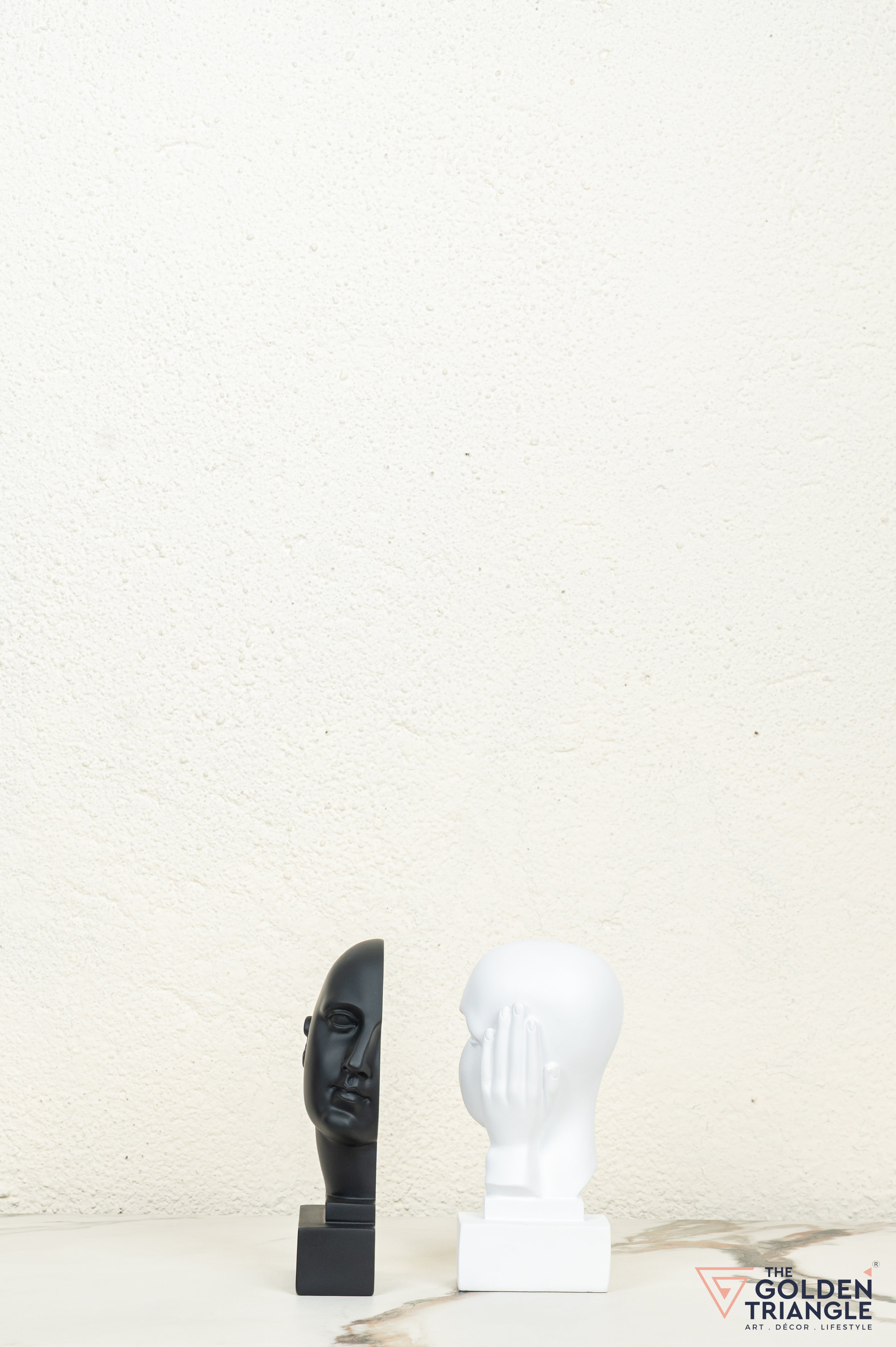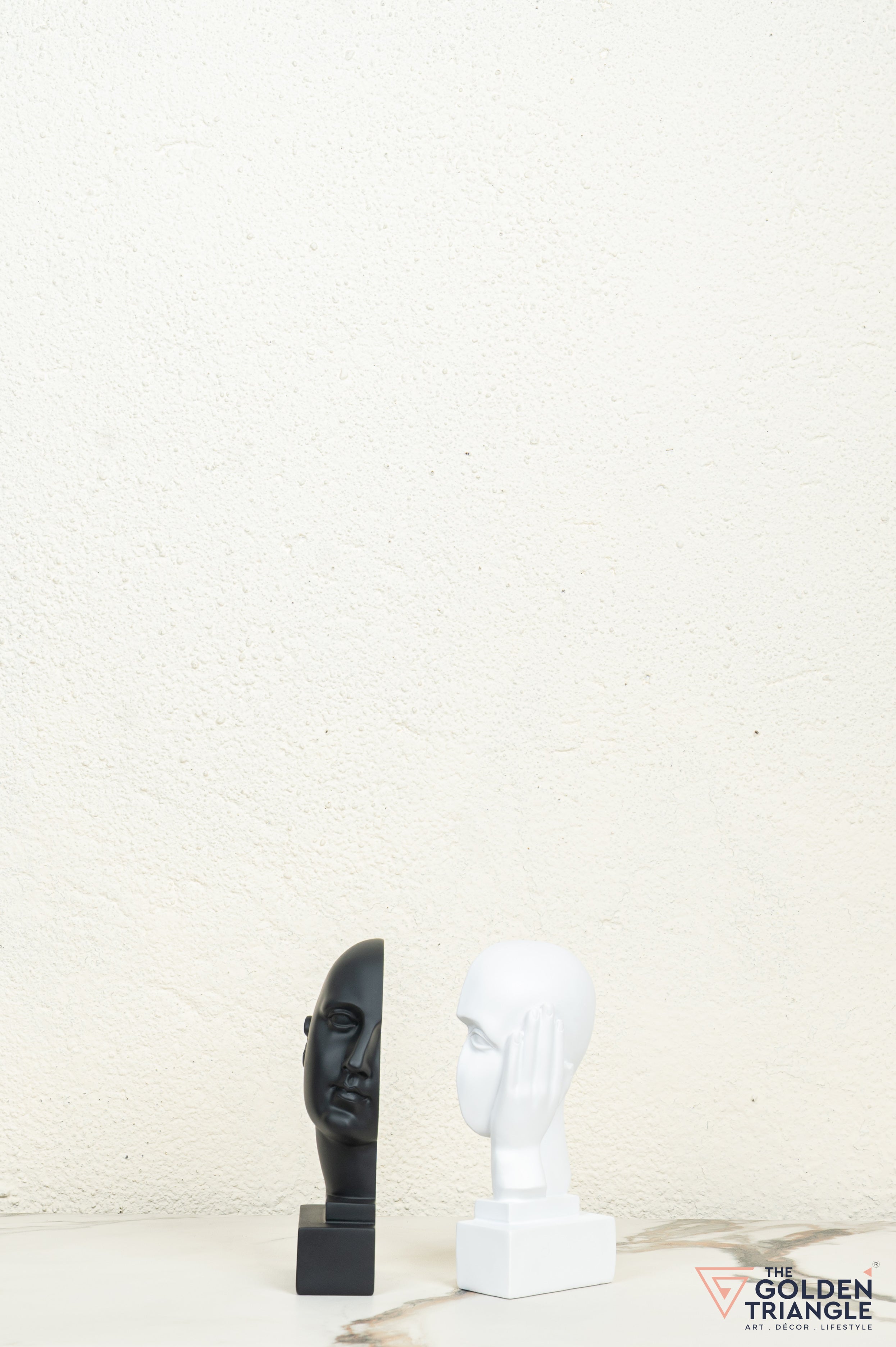 Elevate your home or office decor with this Modern Dual-Tone Abstract Face Bookend Set—a perfect blend of artistic expression and functional elegance. Designed for contemporary spaces, these bookends feature a striking half-black, half-white sculptural face, symbolizing harmony, duality, and balance. Place these bookends on a bookshelf, coffee table, or office desk to instantly add a sophisticated, modern touch. Their artistic form makes them a conversation starter, whether displayed in a study, living room, or workspace.