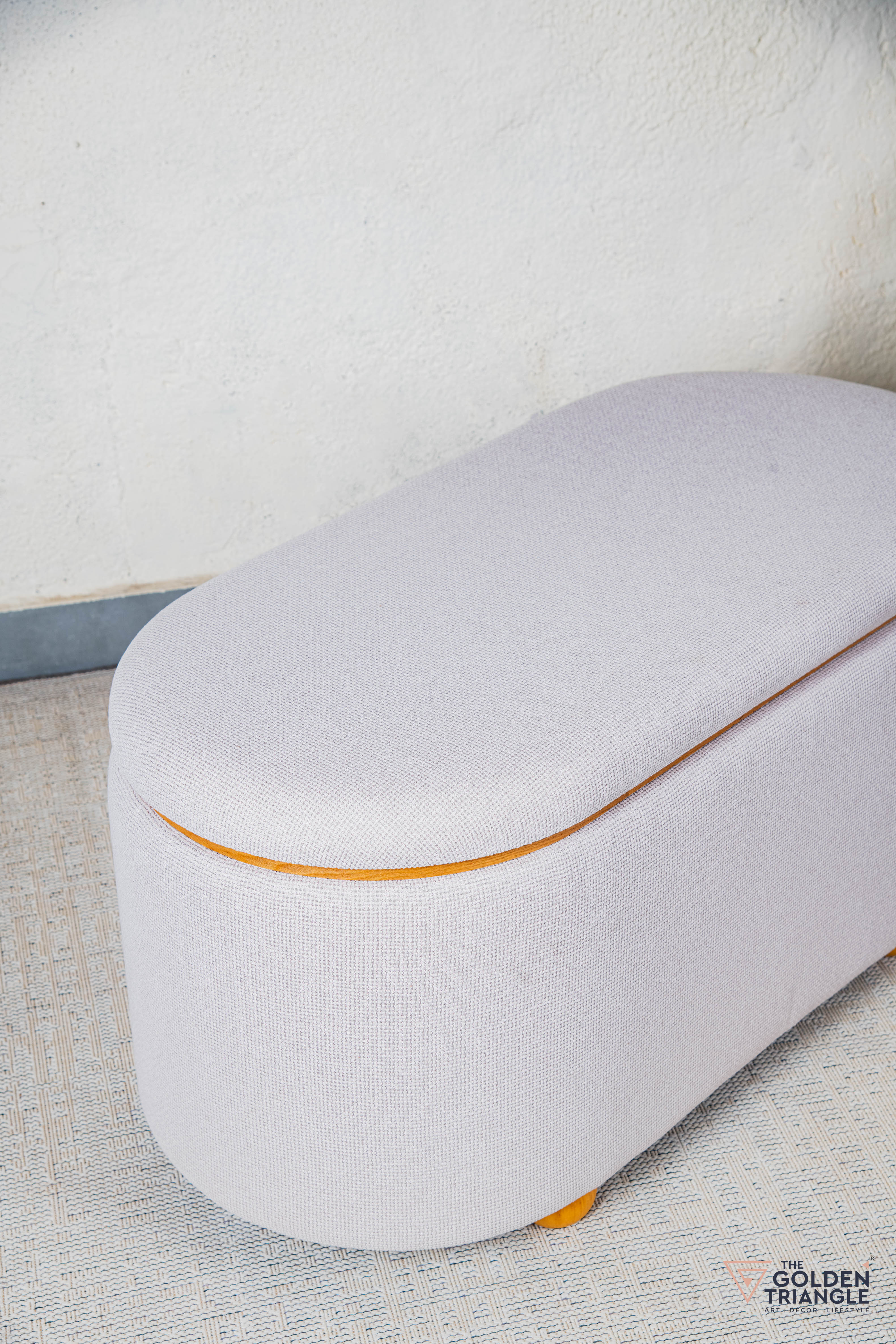 This storage bench features a sleek, modern design wrapped in luxurious fabric. The softly textured upholstery adds warmth and sophistication, while the unique rounded, layered construction creates a striking visual appeal. Supported by sturdy yet discreet black legs, the bench offers ample hidden storage under its cushioned seat, making it both stylish and functional. Perfect for living rooms, bedrooms, or entryways, it combines comfort with utility, seamlessly blending into contemporary home decor.