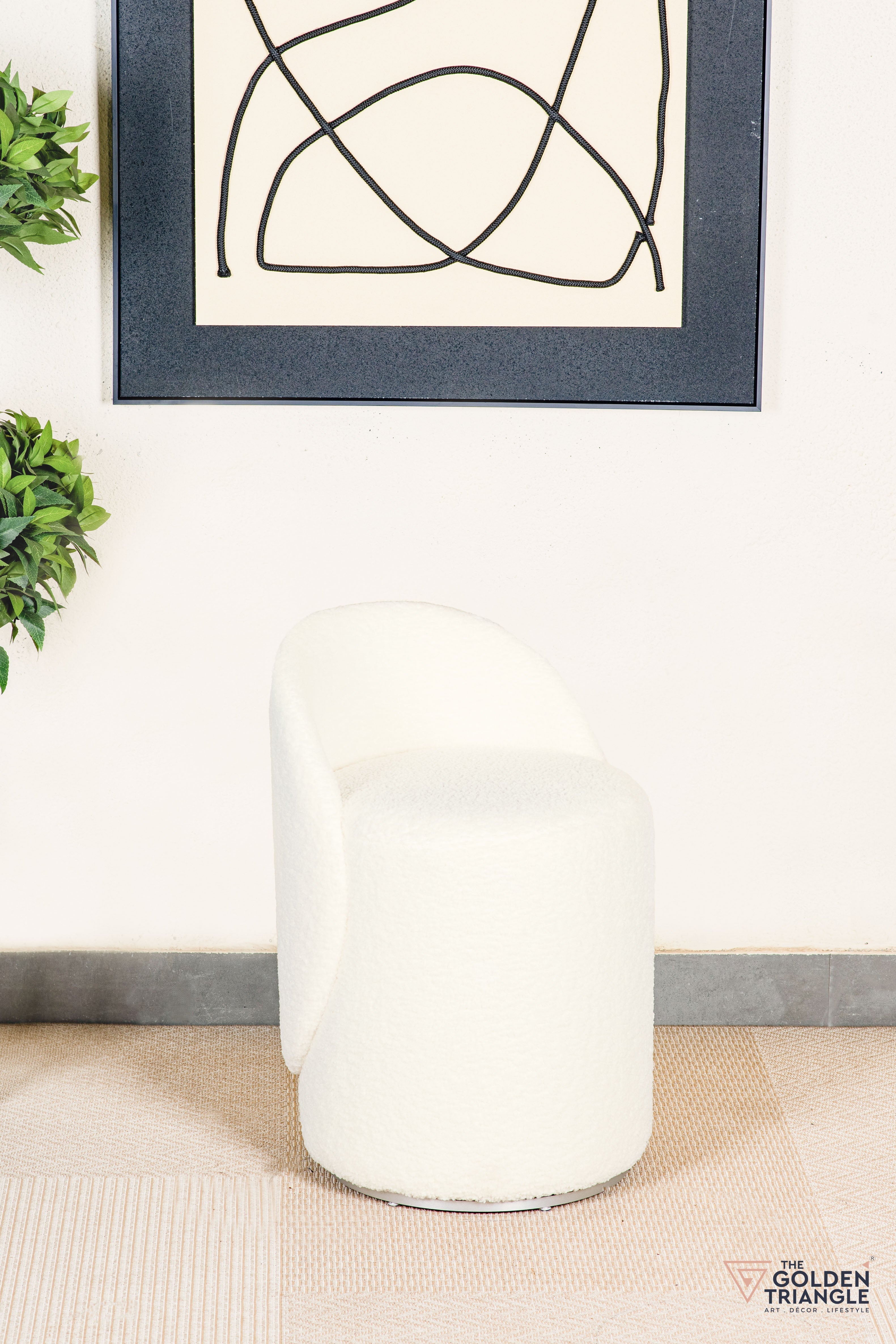 Enhance your living space with this elegant boucle pouffe featuring a cozy backrest and swivel. Its plush, textured fabric offers both style and comfort, making it an ideal accent piece for your makeup vanity. Perfect for modern and contemporary interiors, this versatile seat provides a chic and functional solution for extra seating or a stylish footrest. Shop Now !