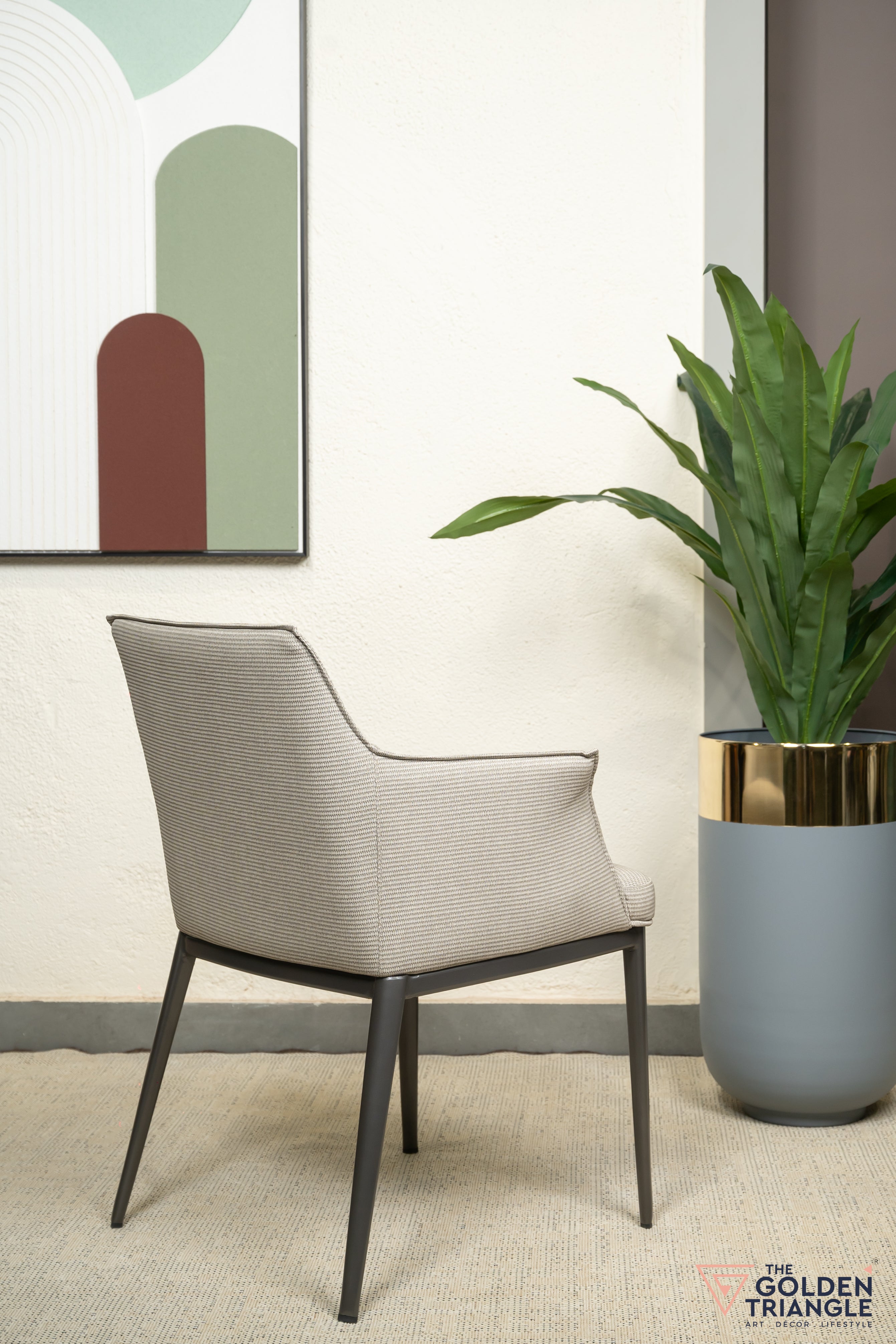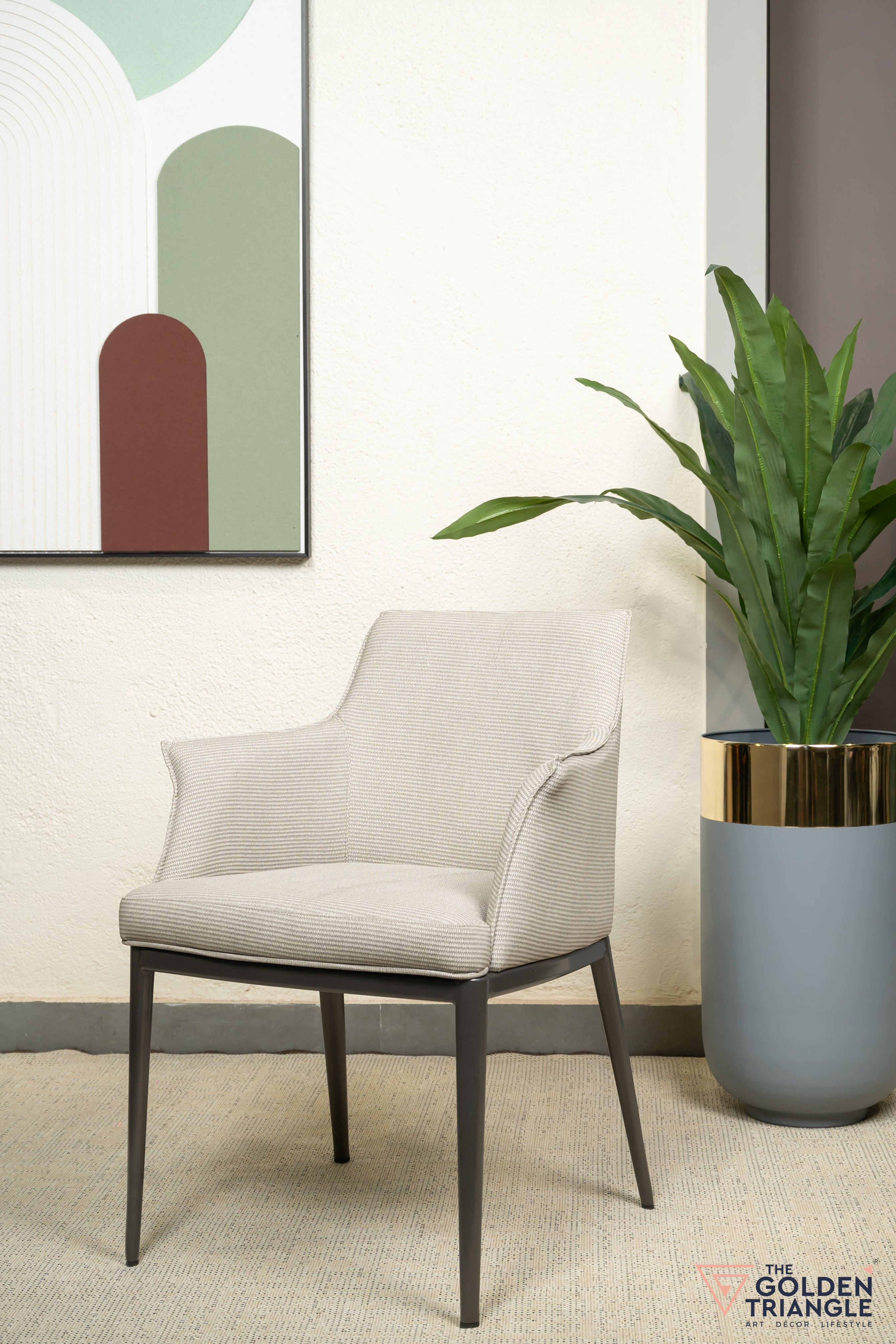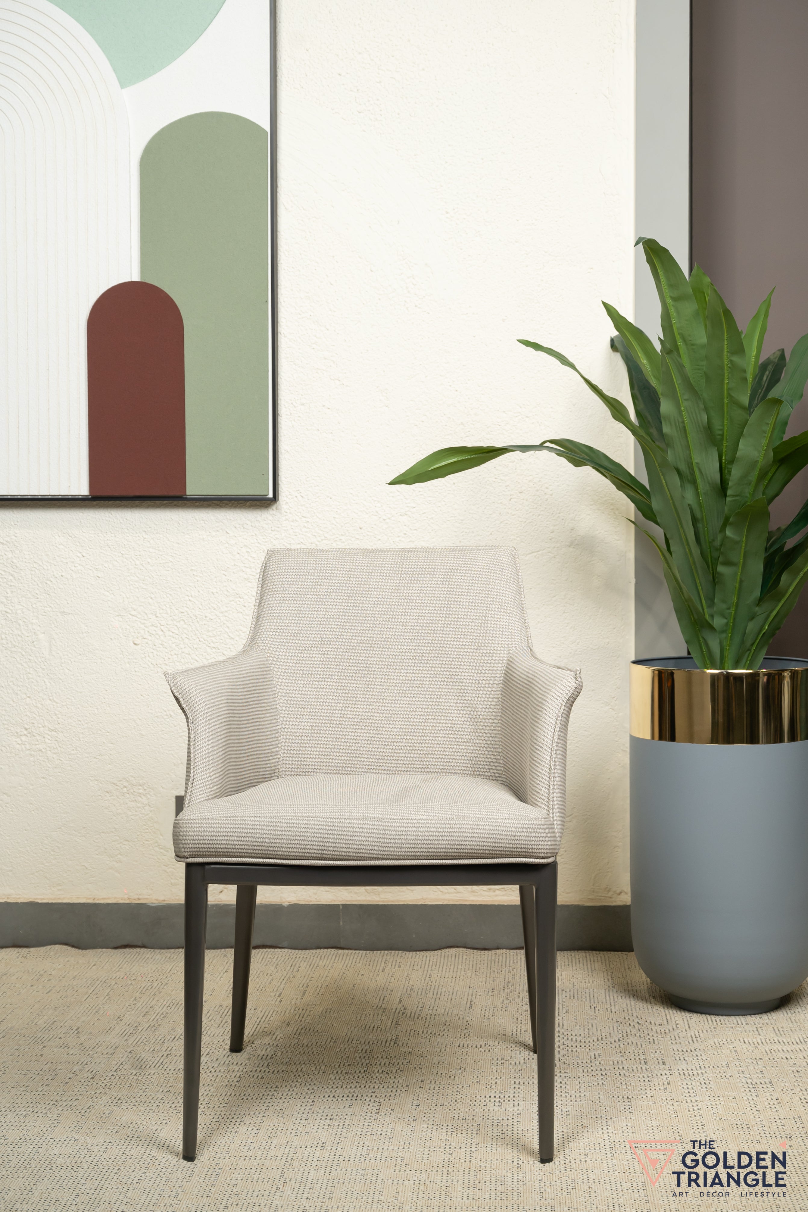 This epitome of style and comfort, the dining chair is apt for all you minimalists. It seamlessly combines form and function, the sleek contemporary silhouette boasts clean lines and a plush upholstered seat ensuring a luxurious dining experience. It is the perfect addition to elevate your dining room ambiance.