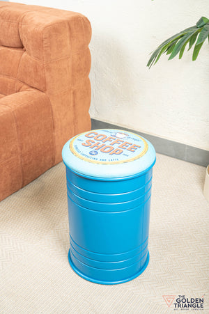 Barrel Pouffe with Storage - Blue