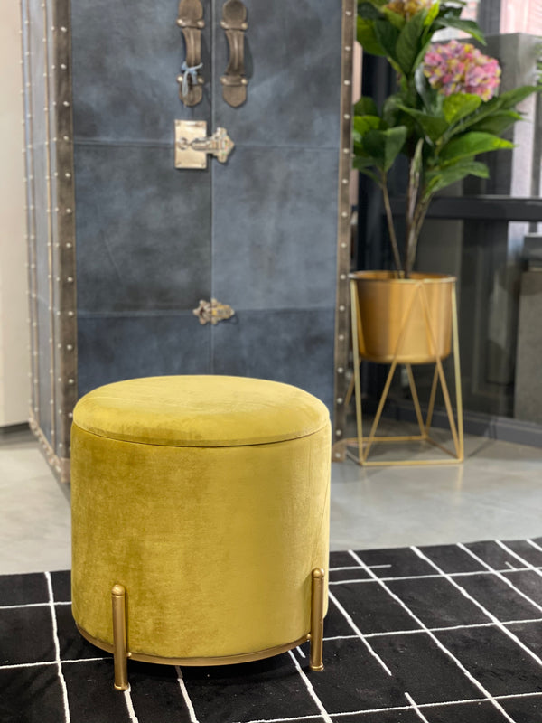 Style meets utility. Stunningly covered in suede, this fine storage pouffe with gold legs is apt for your modern decor. Place it close to your dressing table or living room seating, and use it as a seat or footrest, while you use it to store some essentials.