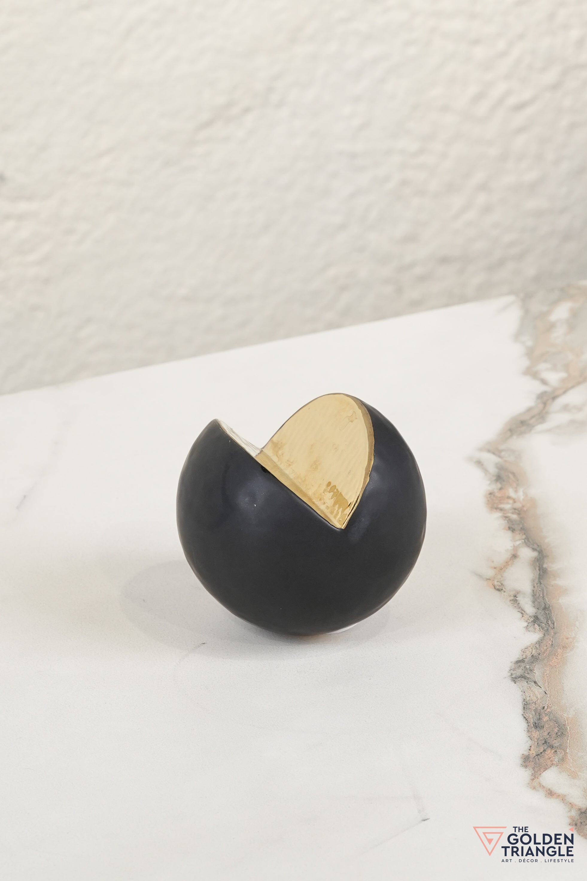 Add a playful yet luxe twist to your decor with this ceramic orange showpiece. Featuring a bold black and gold geometric pattern, this piece brings modern charm with a hint of glam. Ideal for tabletops, consoles, or office shelves, it serves as a quirky accent that sparks joy and style. Whether displayed solo or paired with other décor items, it blends beautifully into contemporary and eclectic spaces.