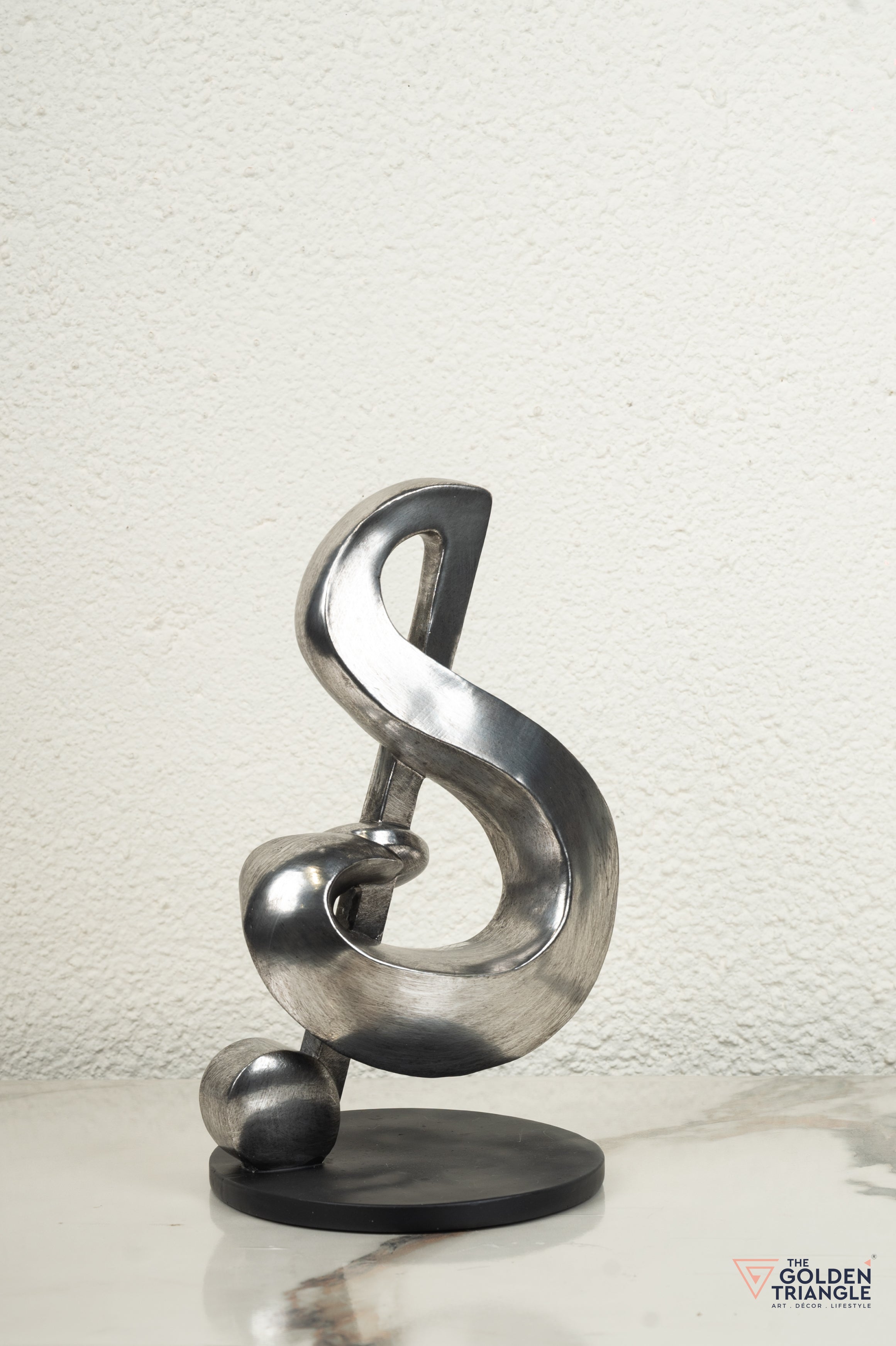 Celebrate your love for music with this stunning treble clef sculpture. Crafted from sleek metal, this unique piece is a perfect blend of art and function. Display it on your desk or mantelpiece to add a touch of sophistication and conversation - starting appeal to any space.
