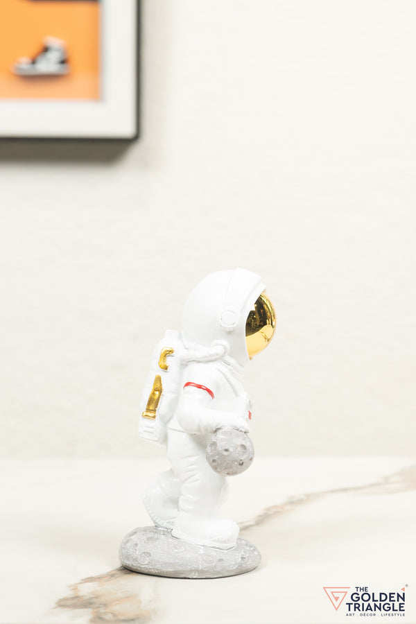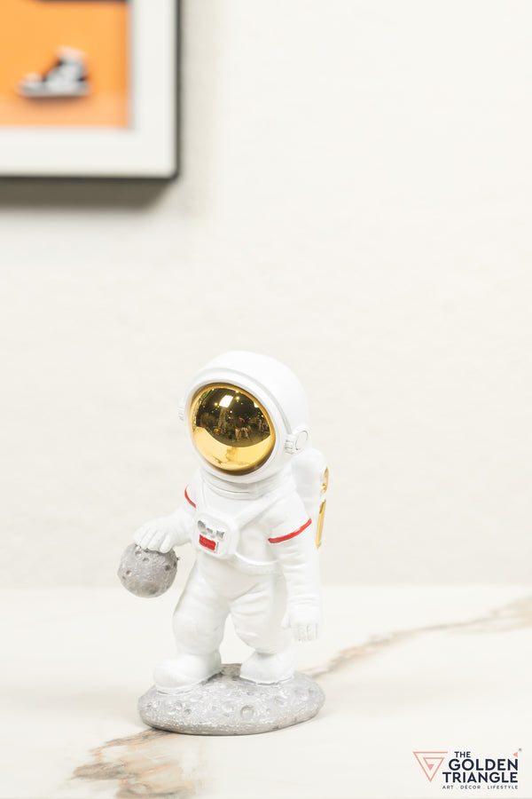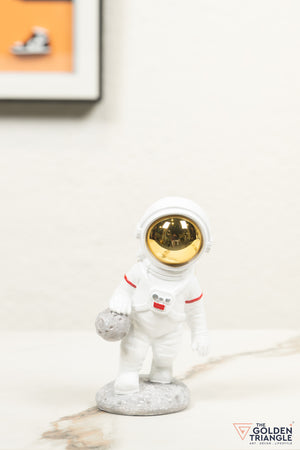 Celebrate the spirit of achievement with this standing astronaut miniature With meticulous attention to detail, from the gleaming spacesuit to the poised stance, it radiates a sense of accomplishment and inspiration. Place it on your shelf, console or entrance table. Whether you're an avid space enthusiast or simply seeking a unique and sophisticated decor piece, it is a perfect addition to let the spirit of exploration adorn your living space with this extraordinary astronaut showpiece.