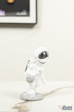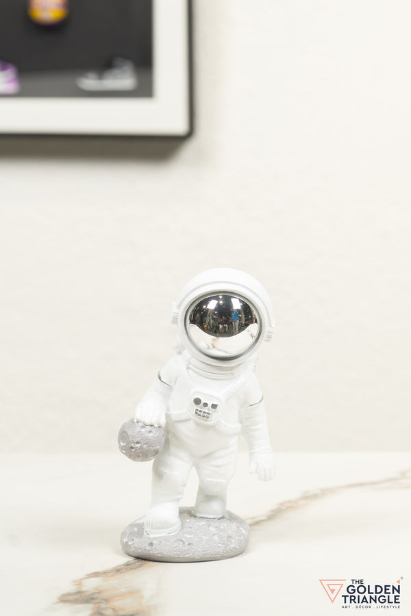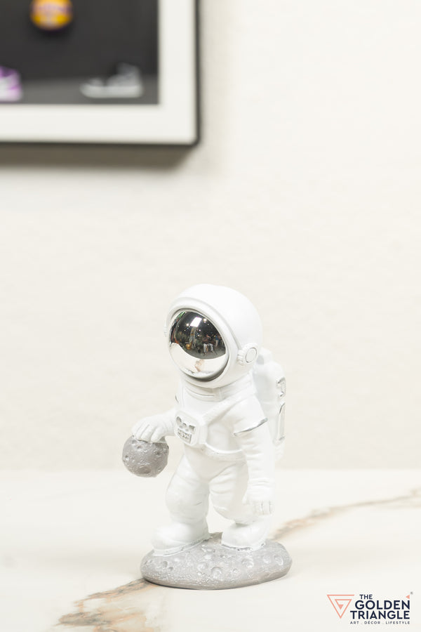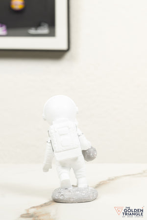 Celebrate the spirit of achievement with this standing astronaut miniature With meticulous attention to detail, from the gleaming spacesuit to the poised stance, it radiates a sense of accomplishment and inspiration. Place it on your shelf, console or entrance table. Whether you're an avid space enthusiast or simply seeking a unique and sophisticated decor piece, it is a perfect addition to let the spirit of exploration adorn your living space with this extraordinary astronaut showpiece.