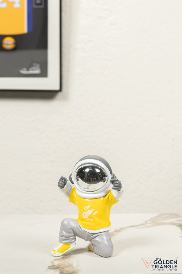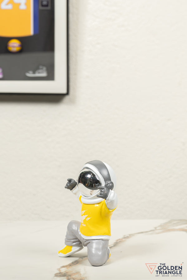 Add a playful, futurist vibe to your space with this quirky astronaut rapper decor piece. Featuring a reflective helmet and bold streetware style, this figurine brings a touch of modern art to any room. Perfect for eclectic and contemporary decor, its a conversation starter. It would look great in a living room, bedroom, office adding a touch of fun and adventure to the space.