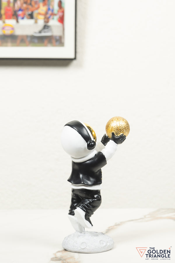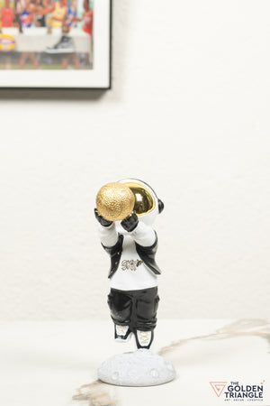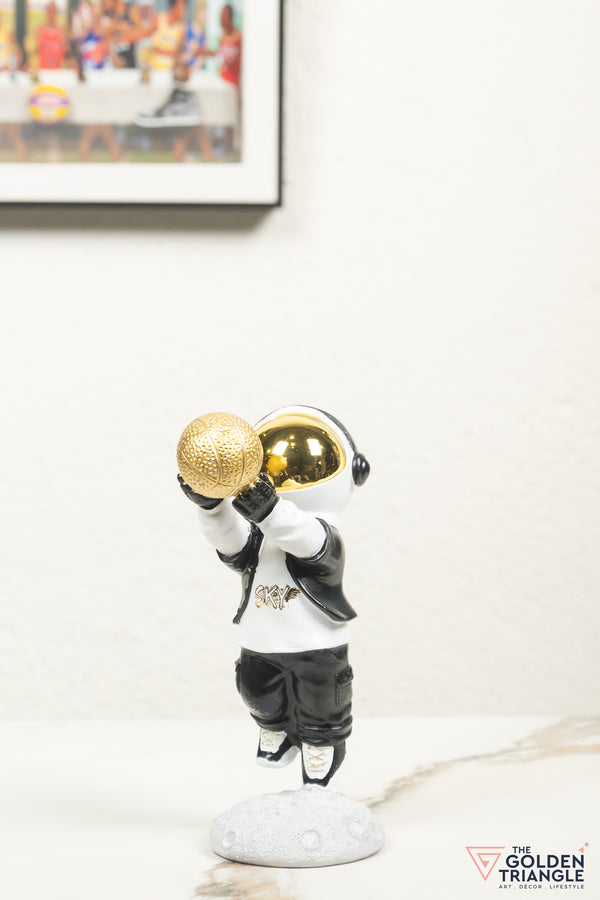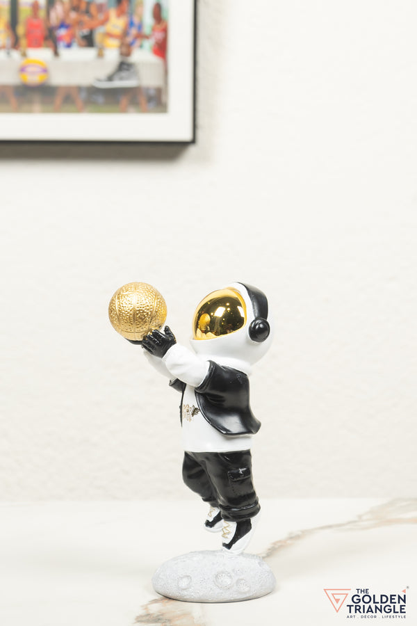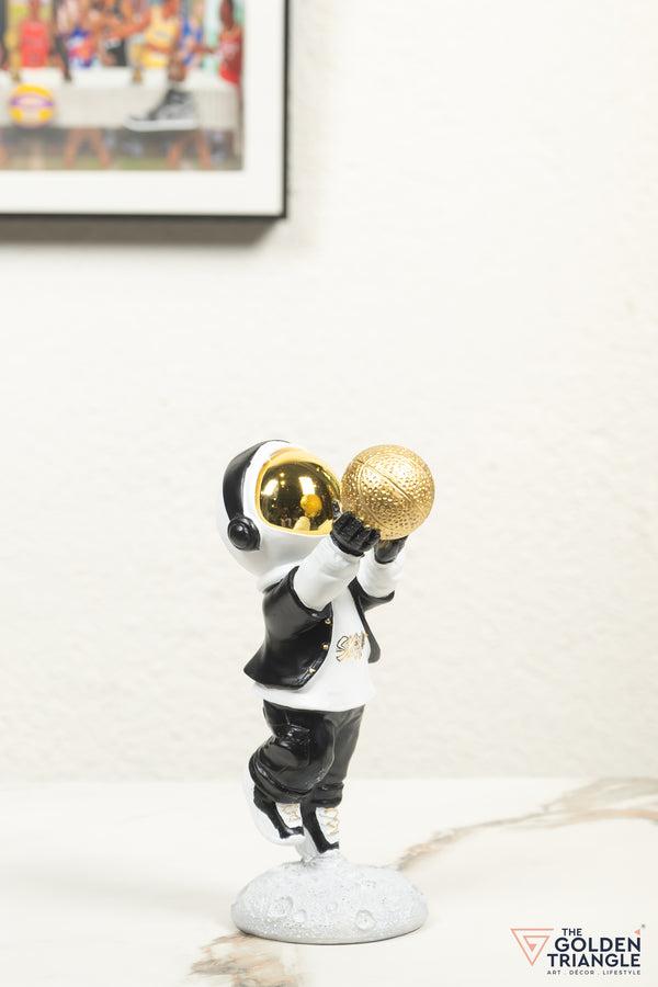 Add a playful, futurist vibe to your space with this quirky astronaut rapper decor piece. Featuring a reflective helmet and bold streetware style, this figurine brings a touch of modern art to any room. Perfect for eclectic and contemporary decor, its a conversation starter. It would look great in a living room, bedroom, office adding a touch of fun and adventure to the space.