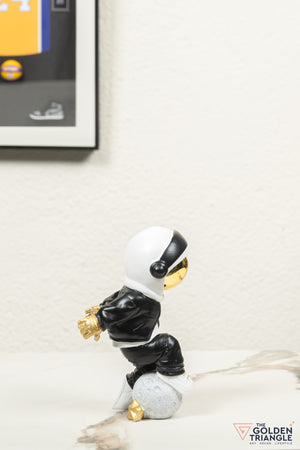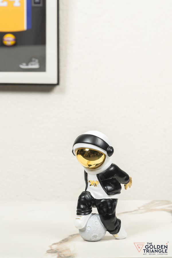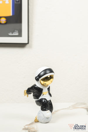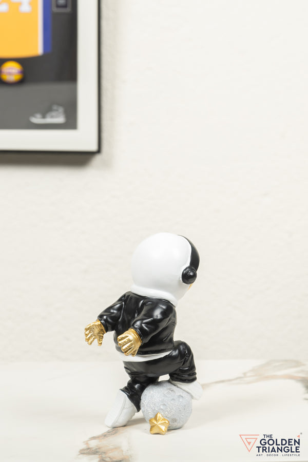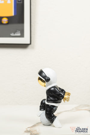 Add a playful, futurist vibe to your space with this quirky astronaut rapper decor piece. Featuring a reflective helmet and bold streetware style, this figurine brings a touch of modern art to any room. Perfect for eclectic and contemporary decor, its a conversation starter. It would look great in a living room, bedroom, office adding a touch of fun and adventure to the space.