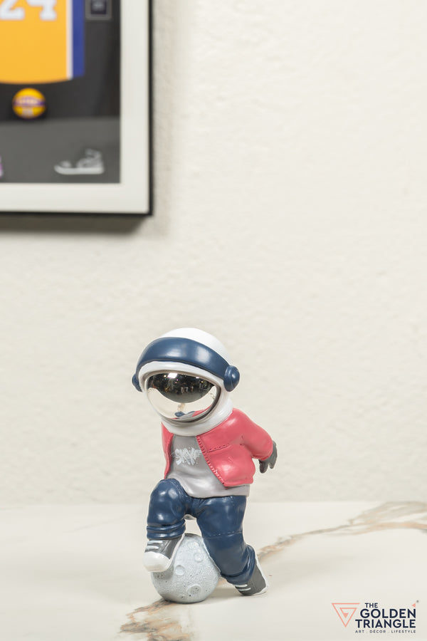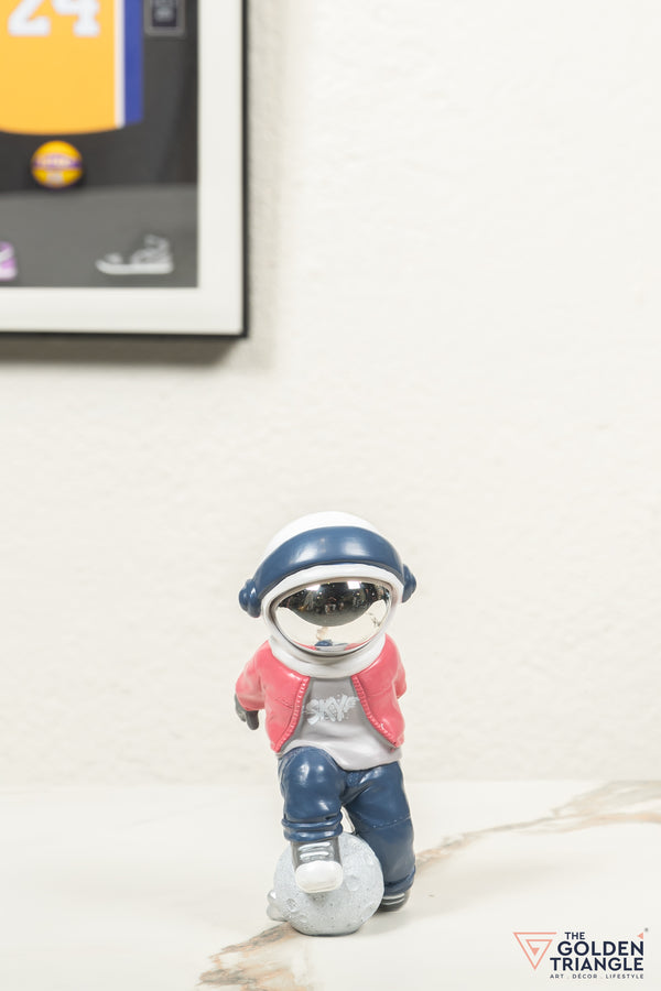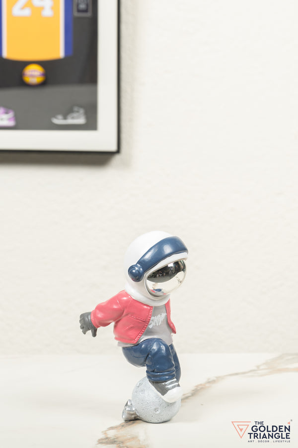 Add a playful, futurist vibe to your space with this quirky astronaut rapper decor piece. Featuring a reflective helmet and bold streetware style, this figurine brings a touch of modern art to any room. Perfect for eclectic and contemporary decor, its a conversation starter. It would look great in a living room, bedroom, office adding a touch of fun and adventure to the space.