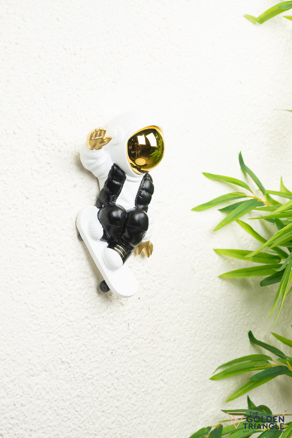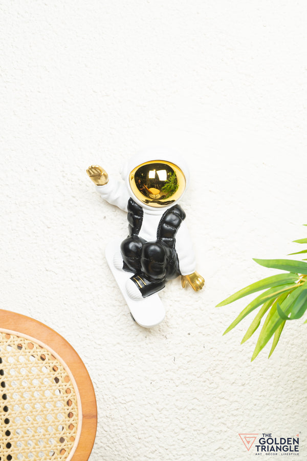 Add a playful, futurist vibe to your space with this quirky astronaut rapper decor piece for your walls. Featuring a reflective helmet and bold streetware style, this figurine brings a touch of modern art to any room. Perfect for eclectic and contemporary decor, its a conversation starter. It would look great in a living room, bedroom or childrens room adding a touch of fun and adventure to the space.