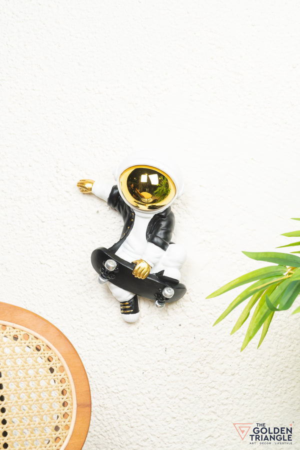 Add a playful, futurist vibe to your space with this quirky astronaut rapper decor piece for your walls. Featuring a reflective helmet and bold streetware style, this figurine brings a touch of modern art to any room. Perfect for eclectic and contemporary decor, its a conversation starter. It would look great in a living room, bedroom or childrens room adding a touch of fun and adventure to the space.