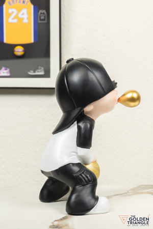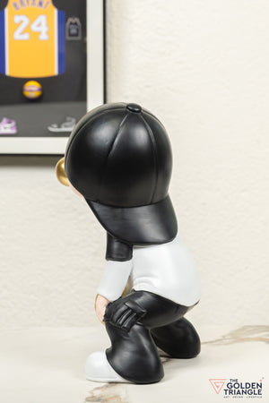Add a playful vibe to your space with this quirky decor piece. Featuring a bold streetware style, this figurine brings a touch of modern art to any room. Perfect for eclectic and contemporary decor, its a conversation starter. It would look great in a living room, bedroom, office adding a touch of fun and adventure to the space.