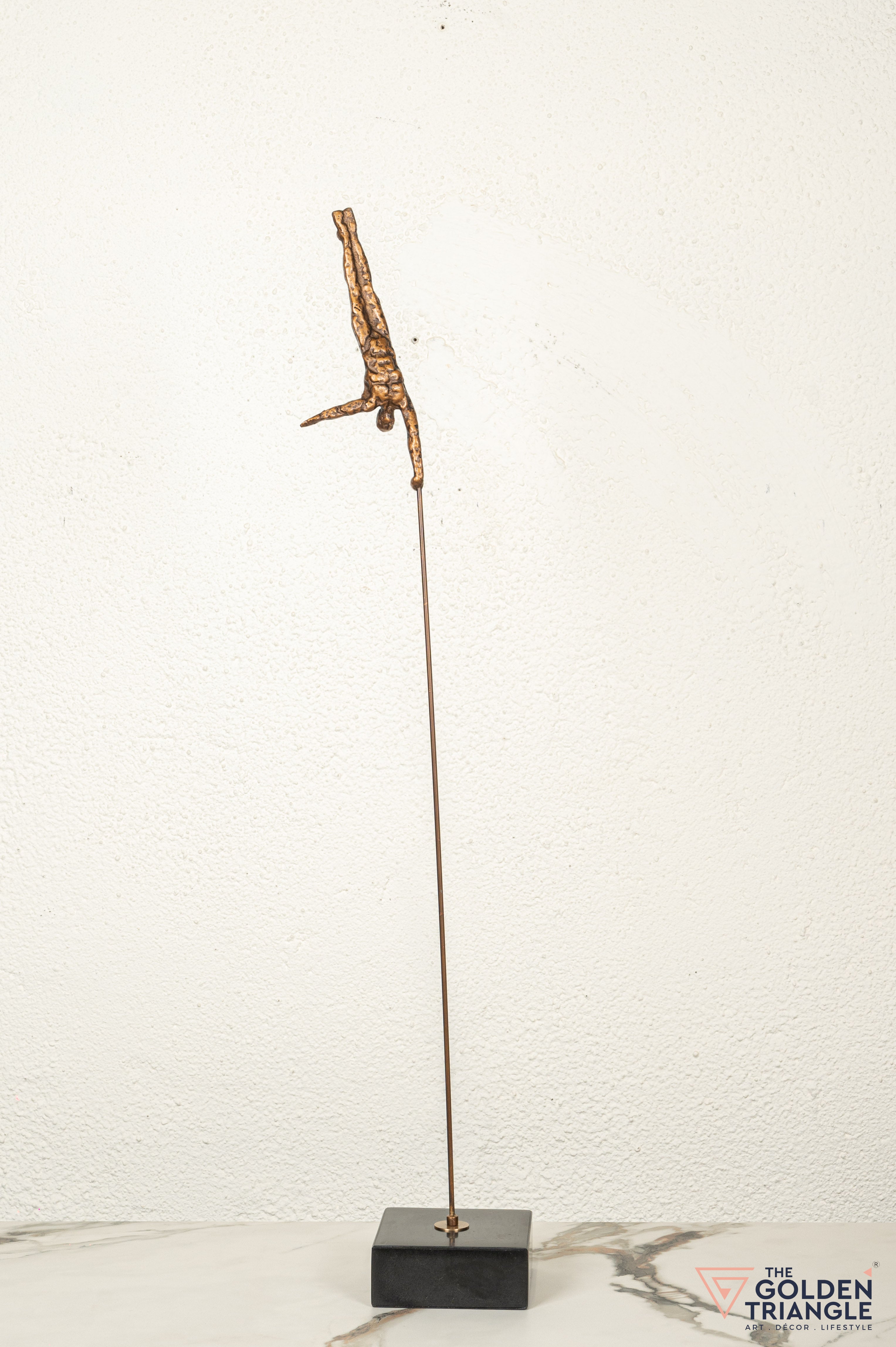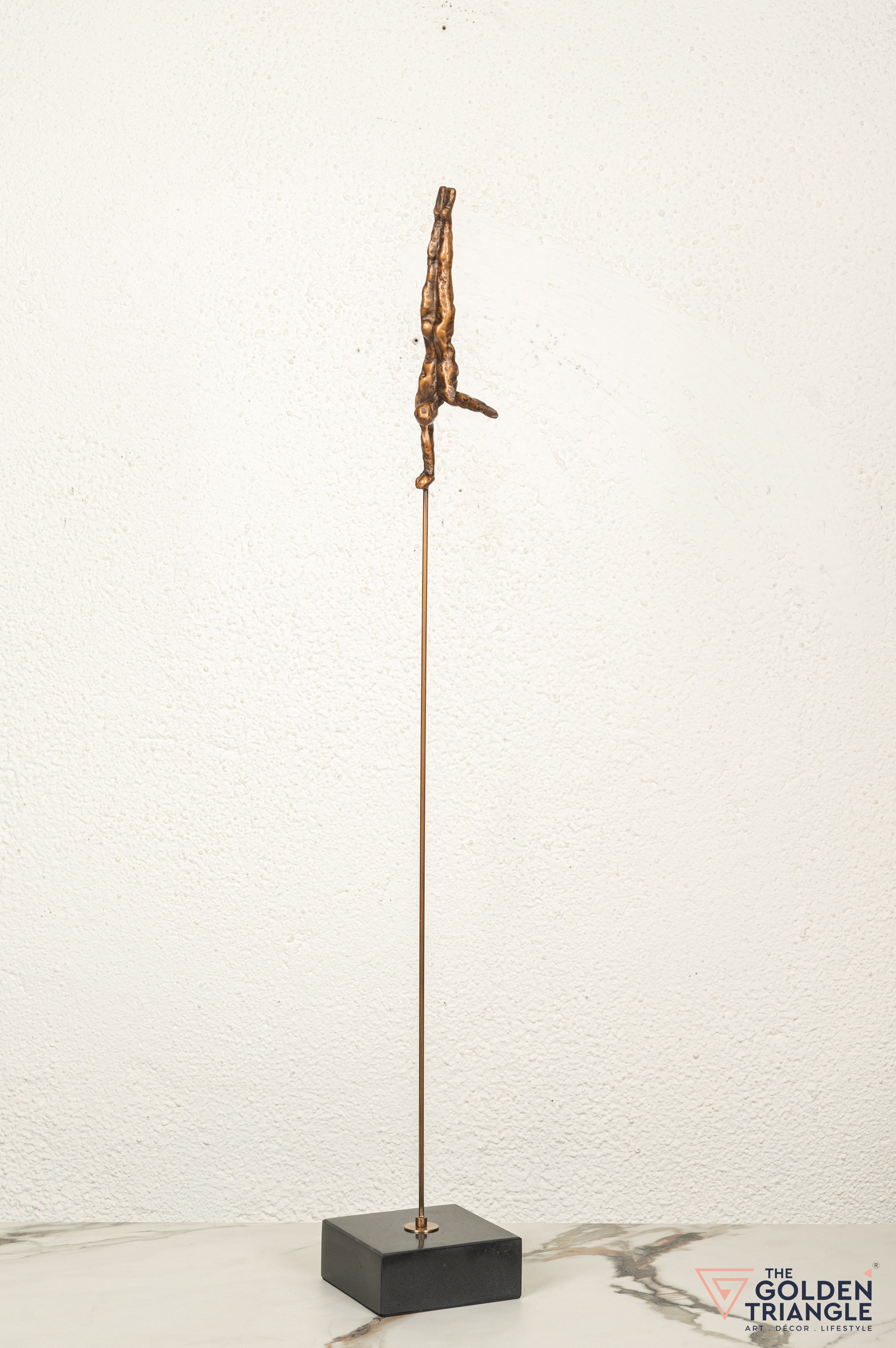 Discover unparalleled sophistication with our abstract sculpture, a masterpiece destined to elevate your home décor. This beautifully crafted artefact of a man doing a handstand showcasing his incredible balance is a unique and captivating piece that is sure to add a touch of whimsy and charm to any living space. Crafted with precision and attention to detail, this sculpture is the epitome of luxury, seamlessly blending contemporary aesthetics with timeless charm.
