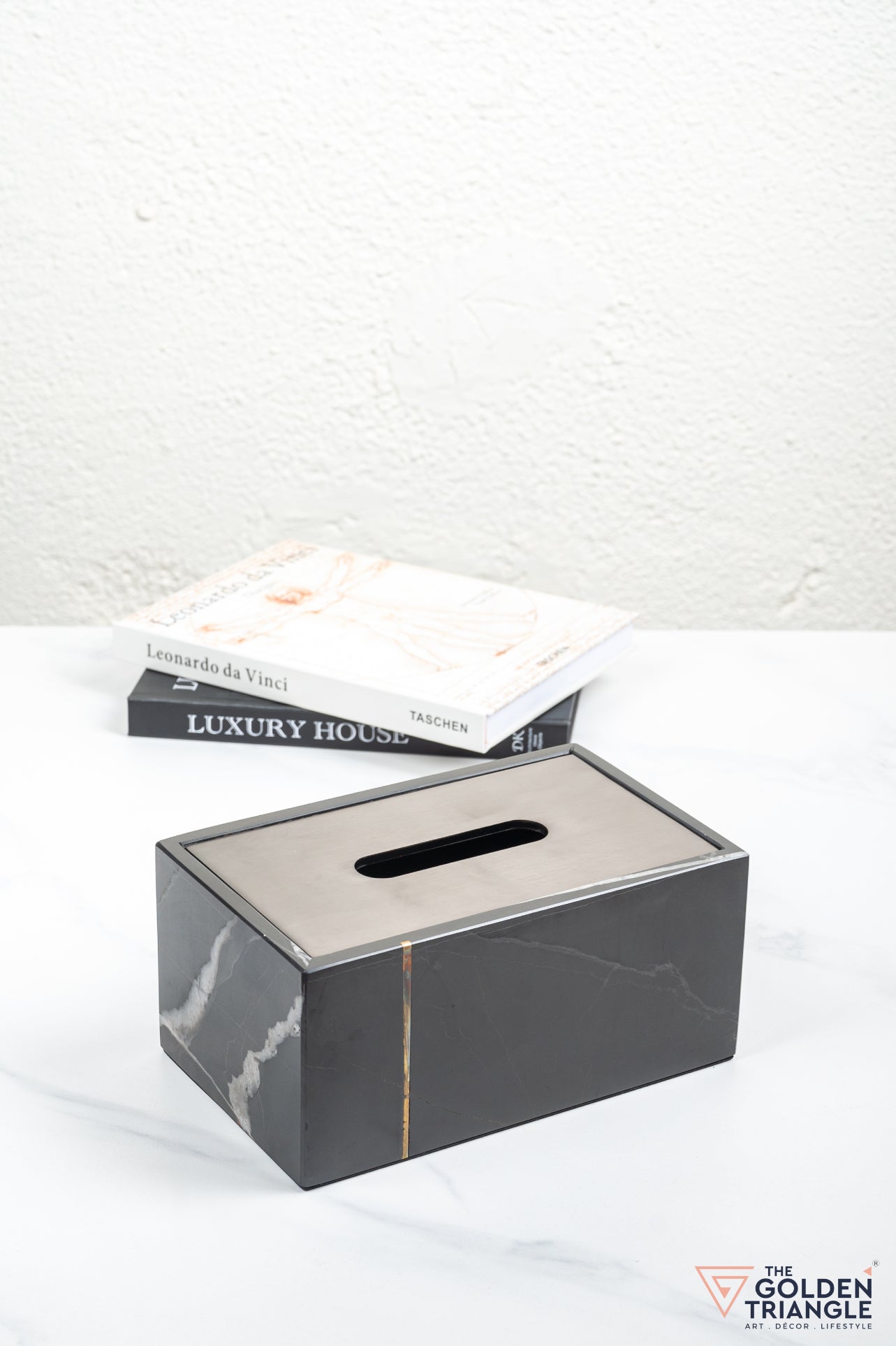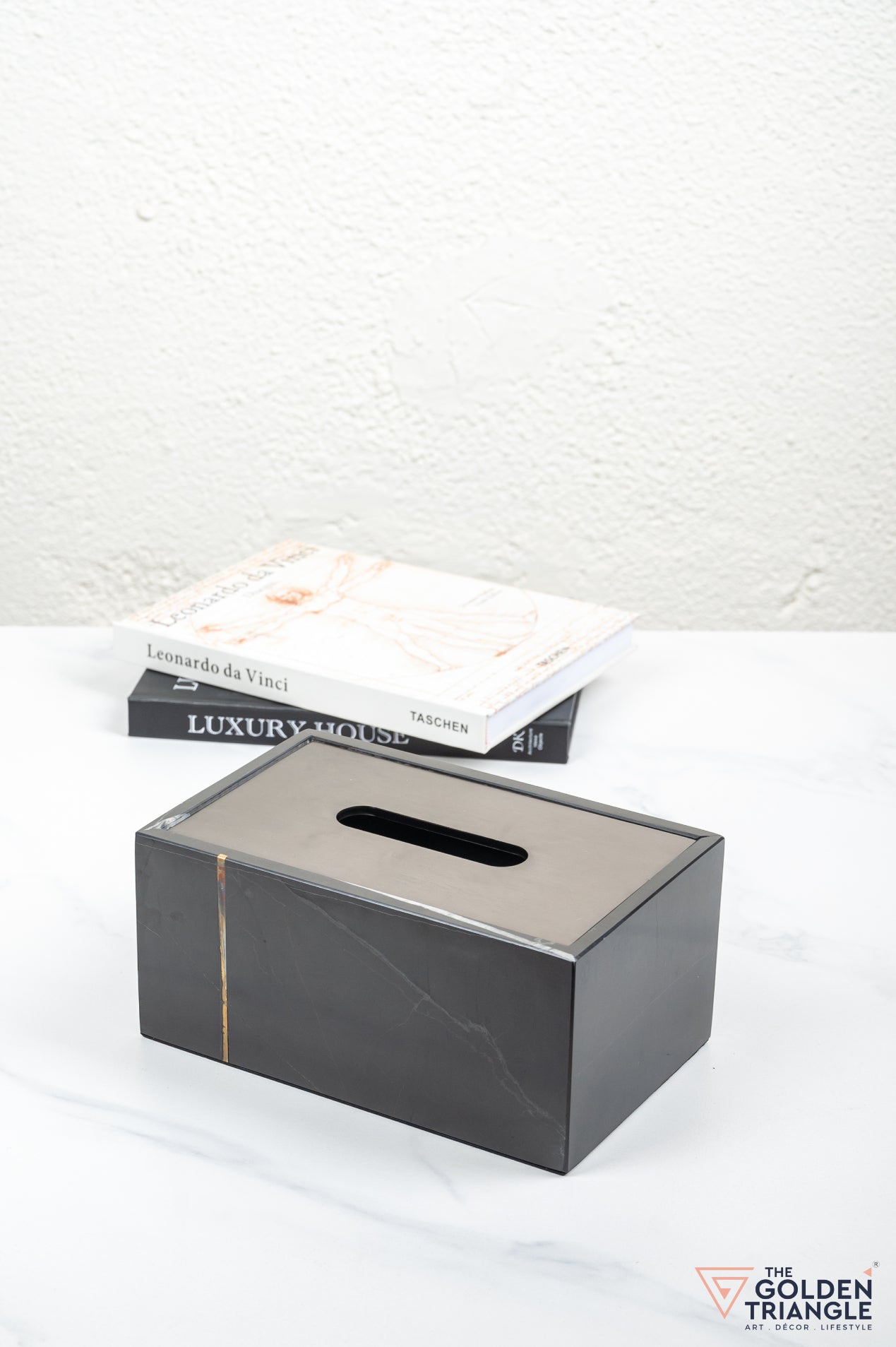 - Daisy Marble Tissue Box - Black & Gun Metal